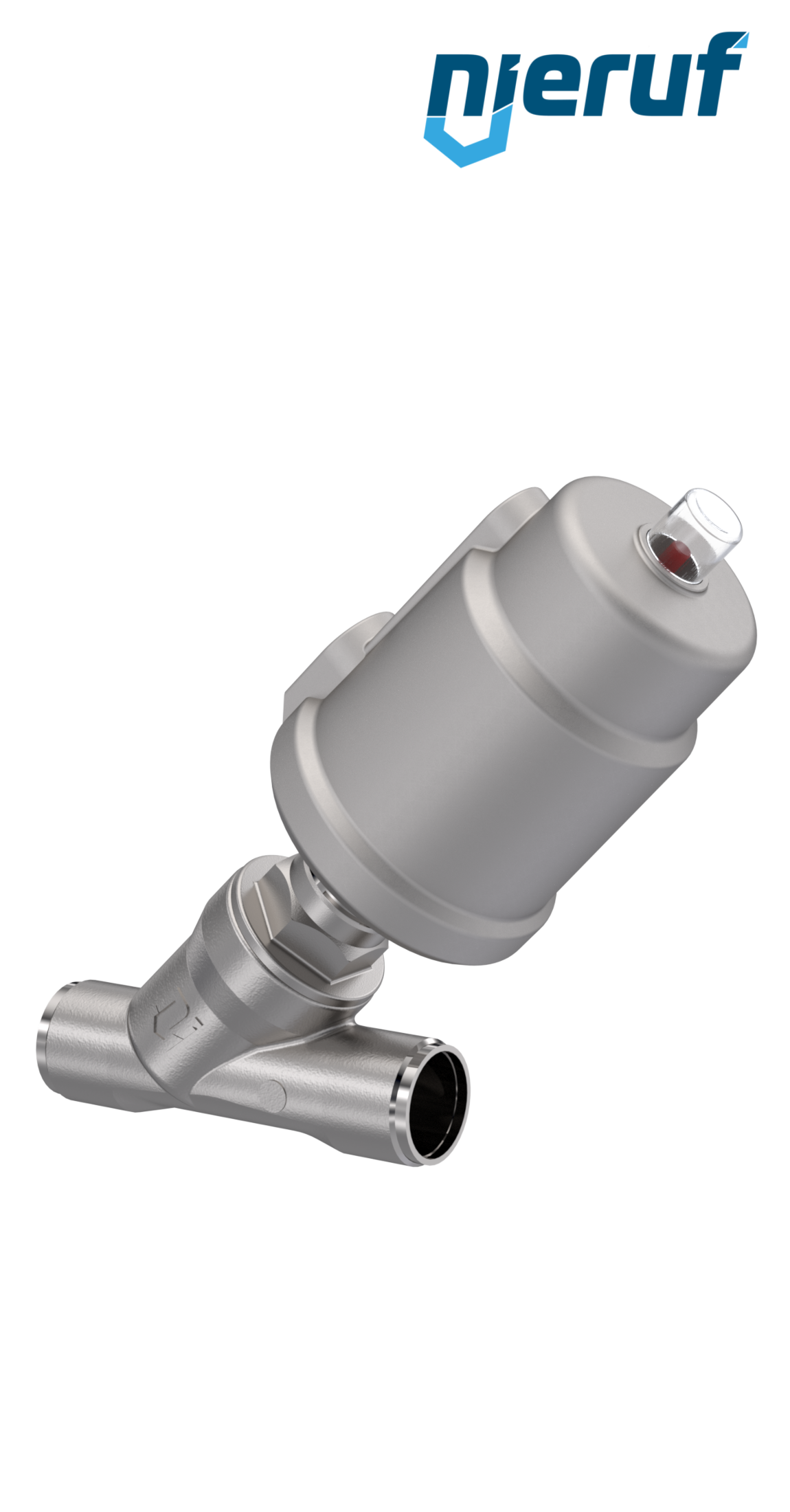 vanne à siège incliné modèle SC01 G 1/2" pouce extrémité à souder DN15 fermeture dans le sens du flux en acier inoxydable 1.4408