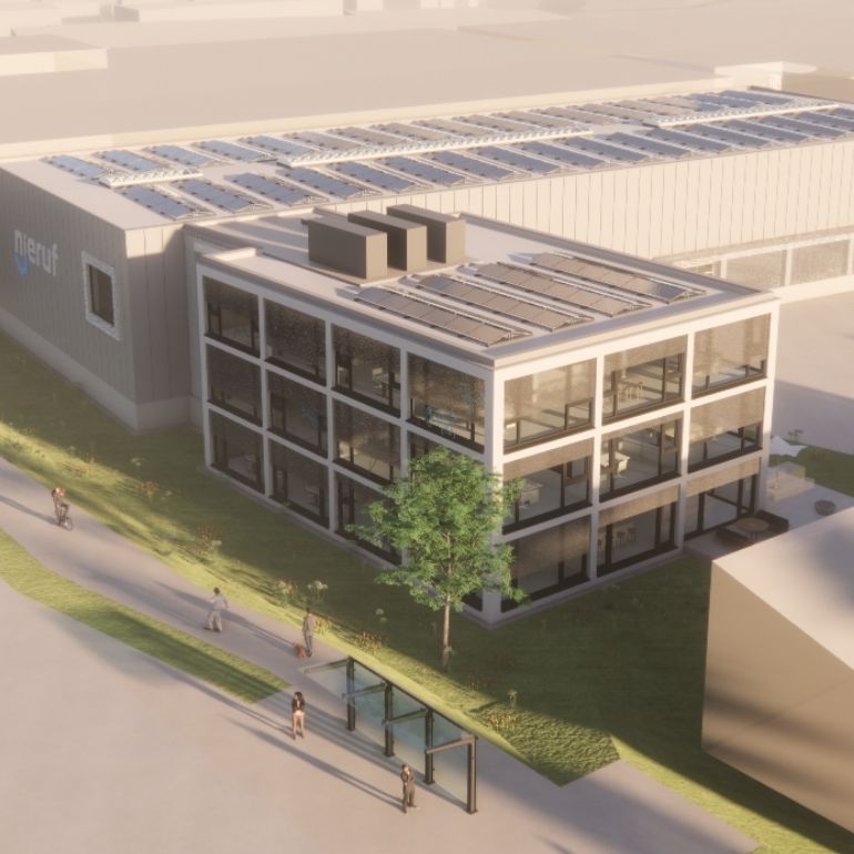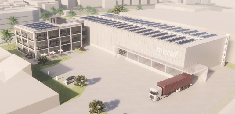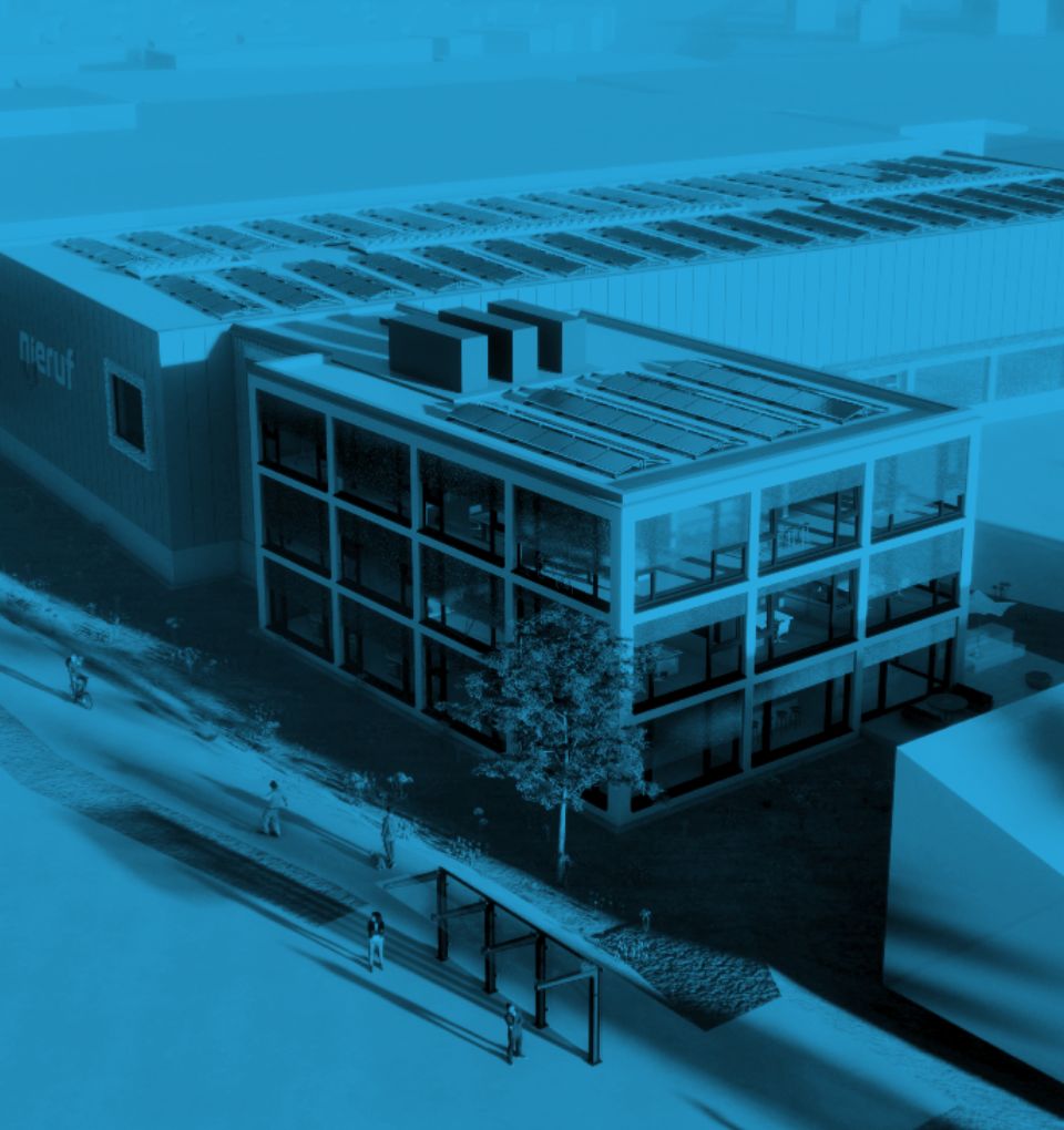 Maintenant, le hall fait place à un immeuble de bureaux moderne avec un entrepôt qui servira de nouveau quartier général pour NieRuf. Il en résulte un site d'avenir qui allie la tradition du lieu à de nouvelles perspectives.