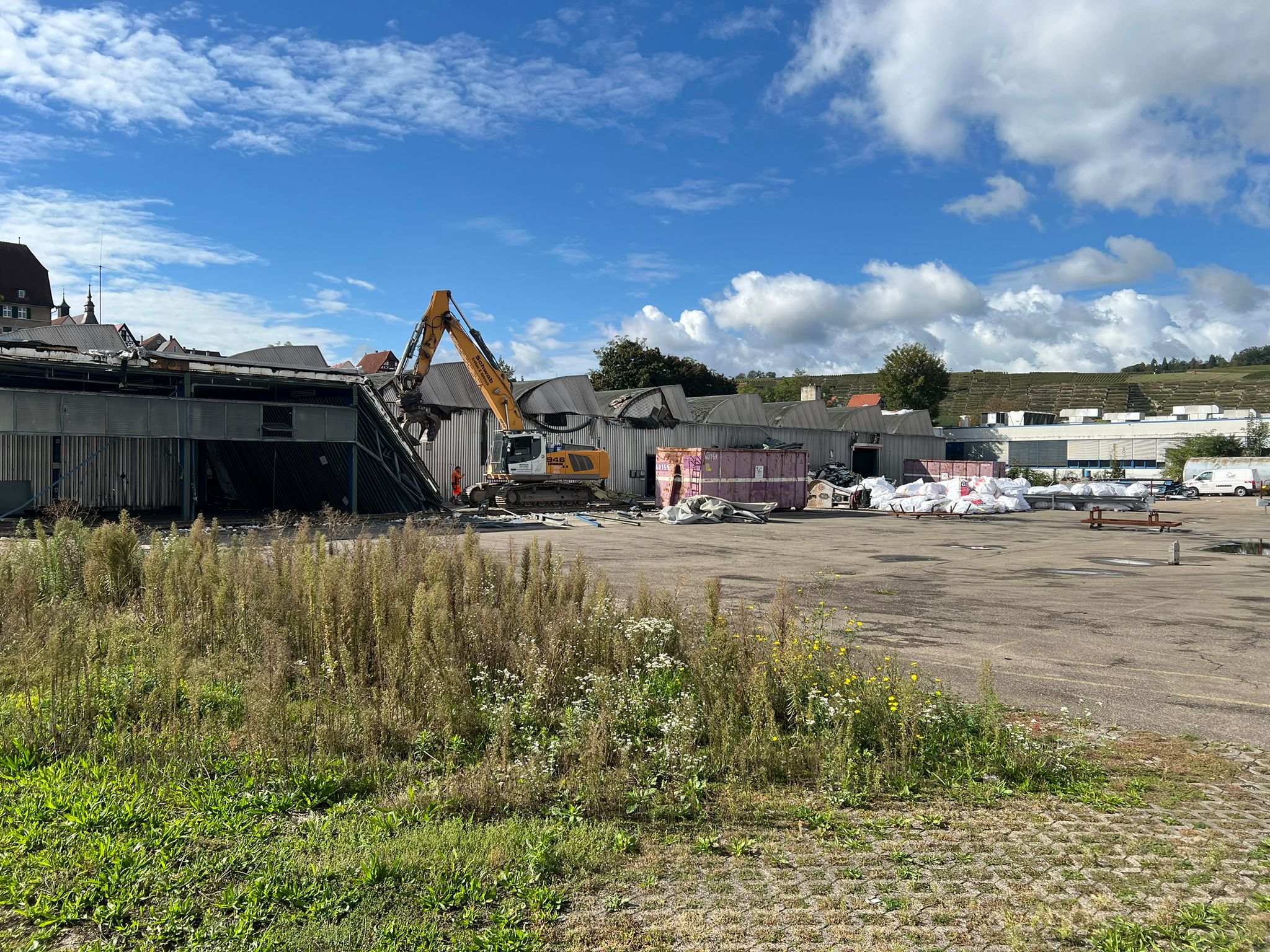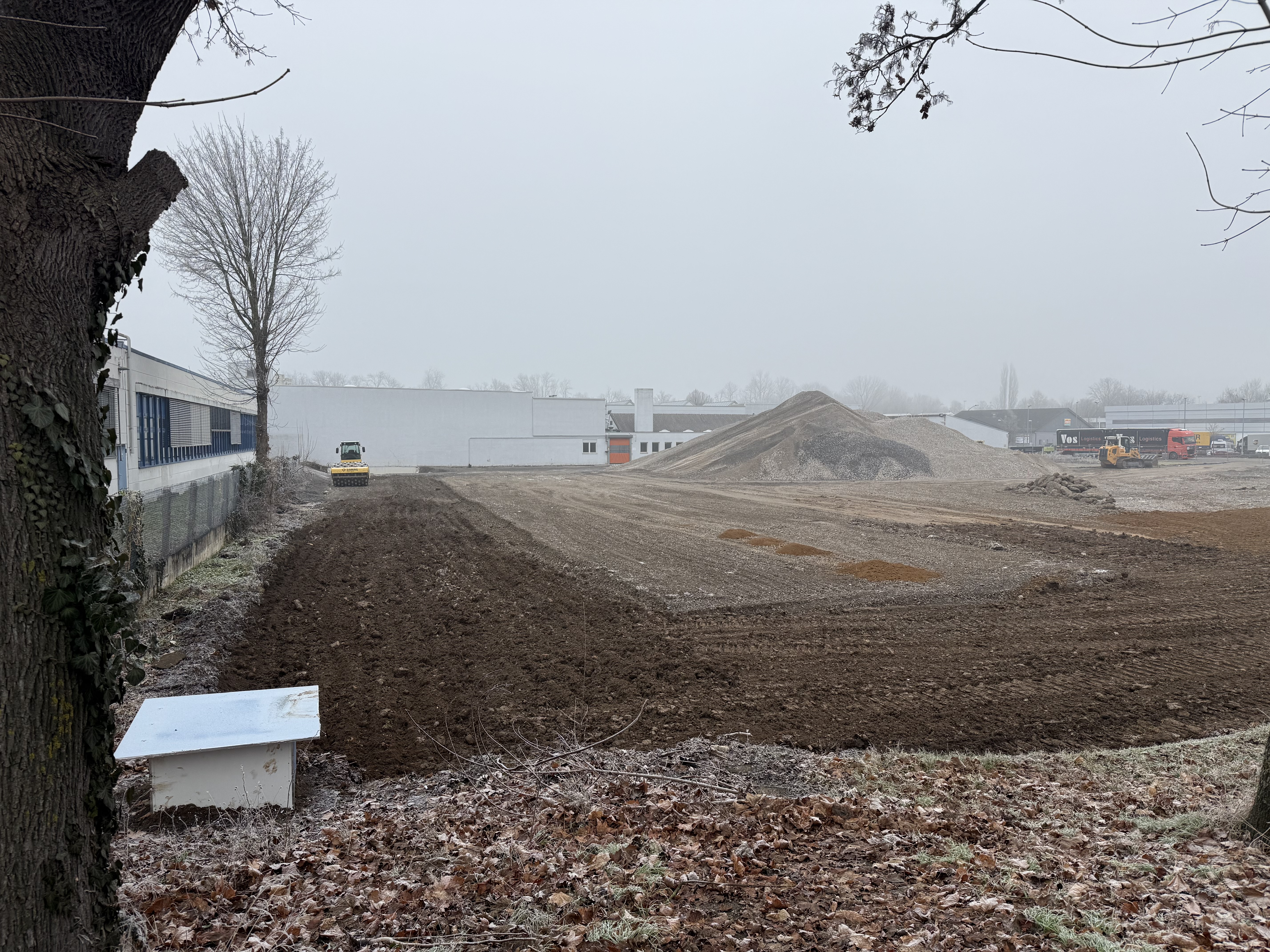 Le mois de novembre apporte de grands progrès : L'ancien bâtiment industriel est entièrement démoli et les matériaux ont été soigneusement séparés et éliminés de manière appropriée. L'étape suivante consiste à s'attaquer à l'ancien radier et à l'asphalte, qui seront concassés et réutilisés de manière durable après une étude approfondie réalisée sur place par une expertise géologique.