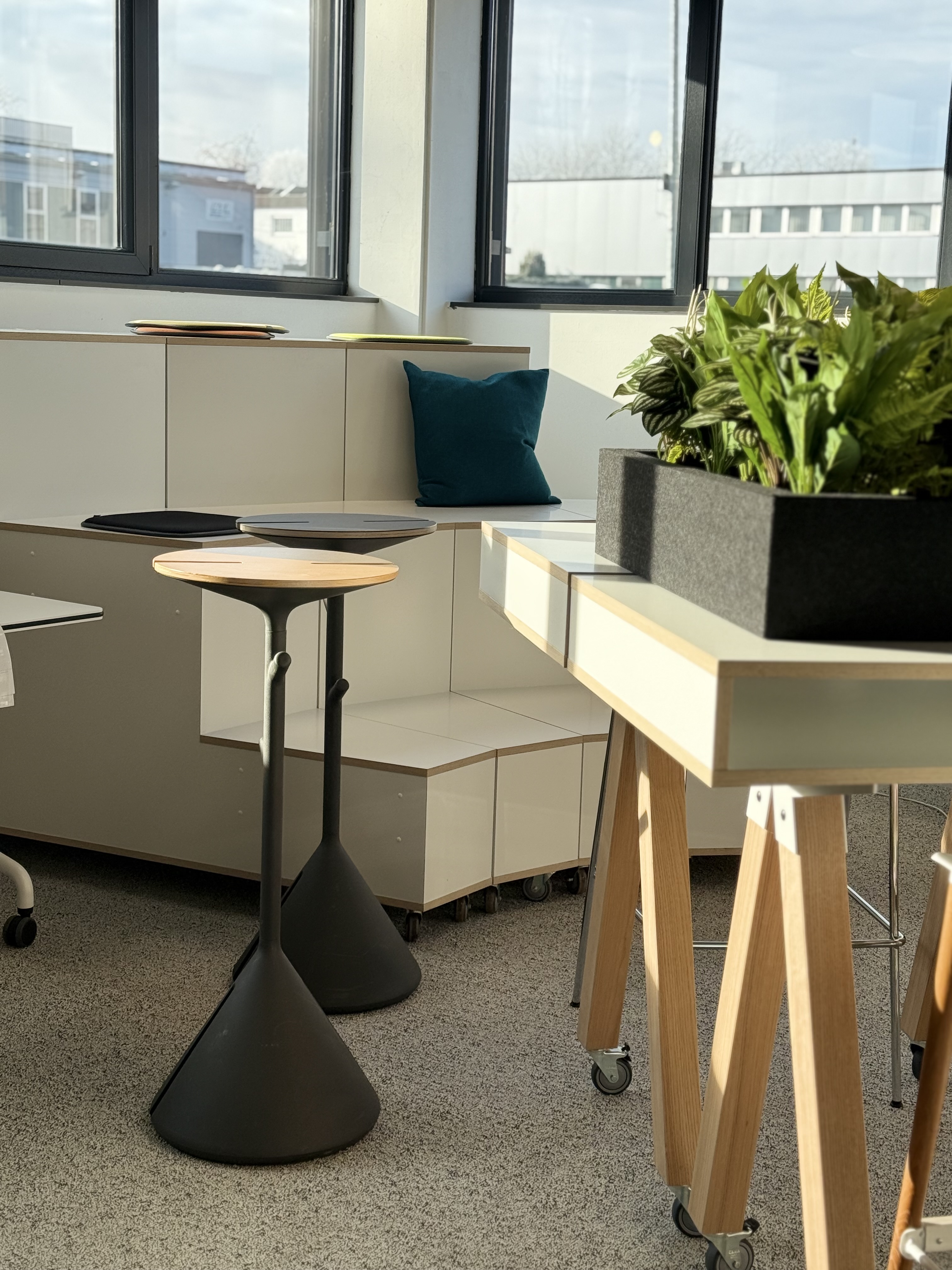 Le béton apparent est brut, authentique et sans mise en scène – tout comme notre exigence dans ce que nous faisons. Le style industriel crée une atmosphère où l’on sent : ici, on ne fait pas que travailler. Ici, on crée quelque chose de solide.