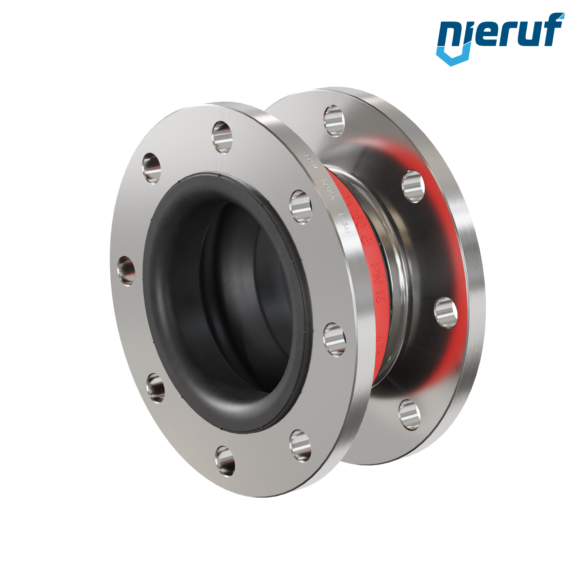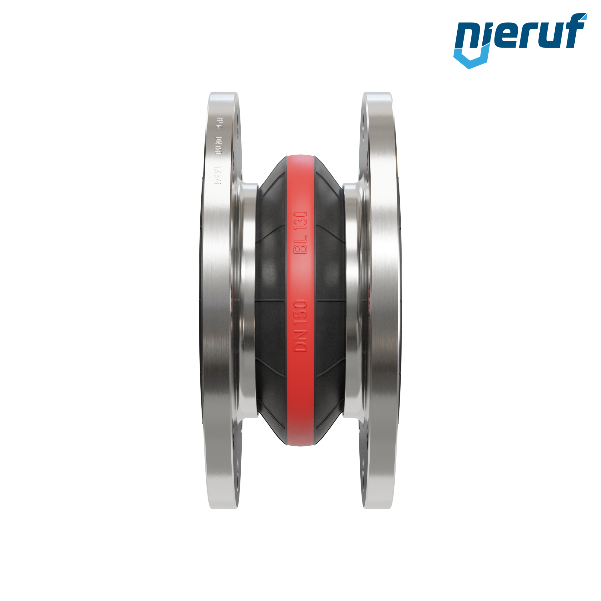 Ce compensateur en caoutchouc de haute qualité avec joint EPDM et brides en acier inoxydable est homologué ACS pour l'eau potable. Le modèle peut être étendu avec un revêtement en PTFE, des anneaux de support de vide et d'autres options sur demande.