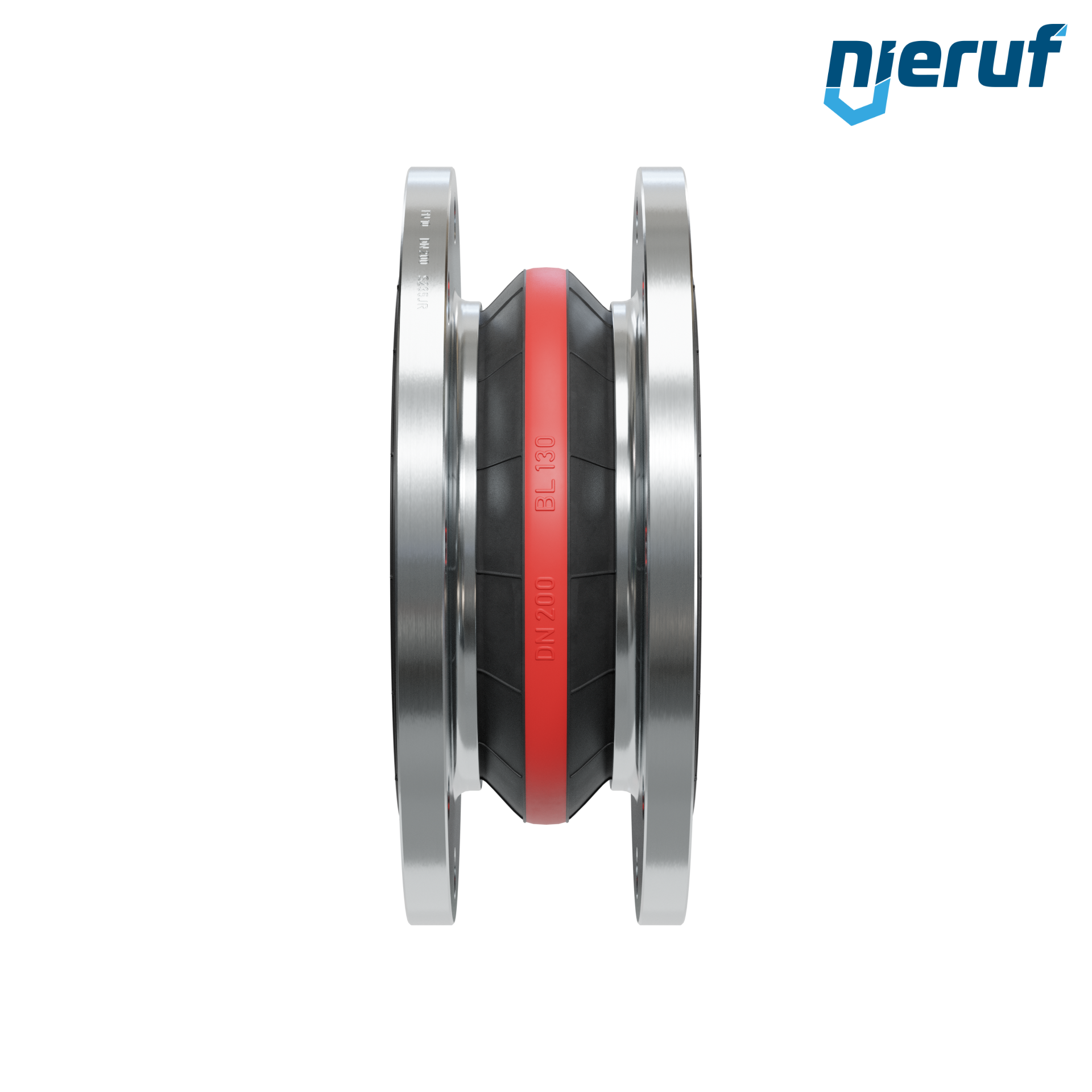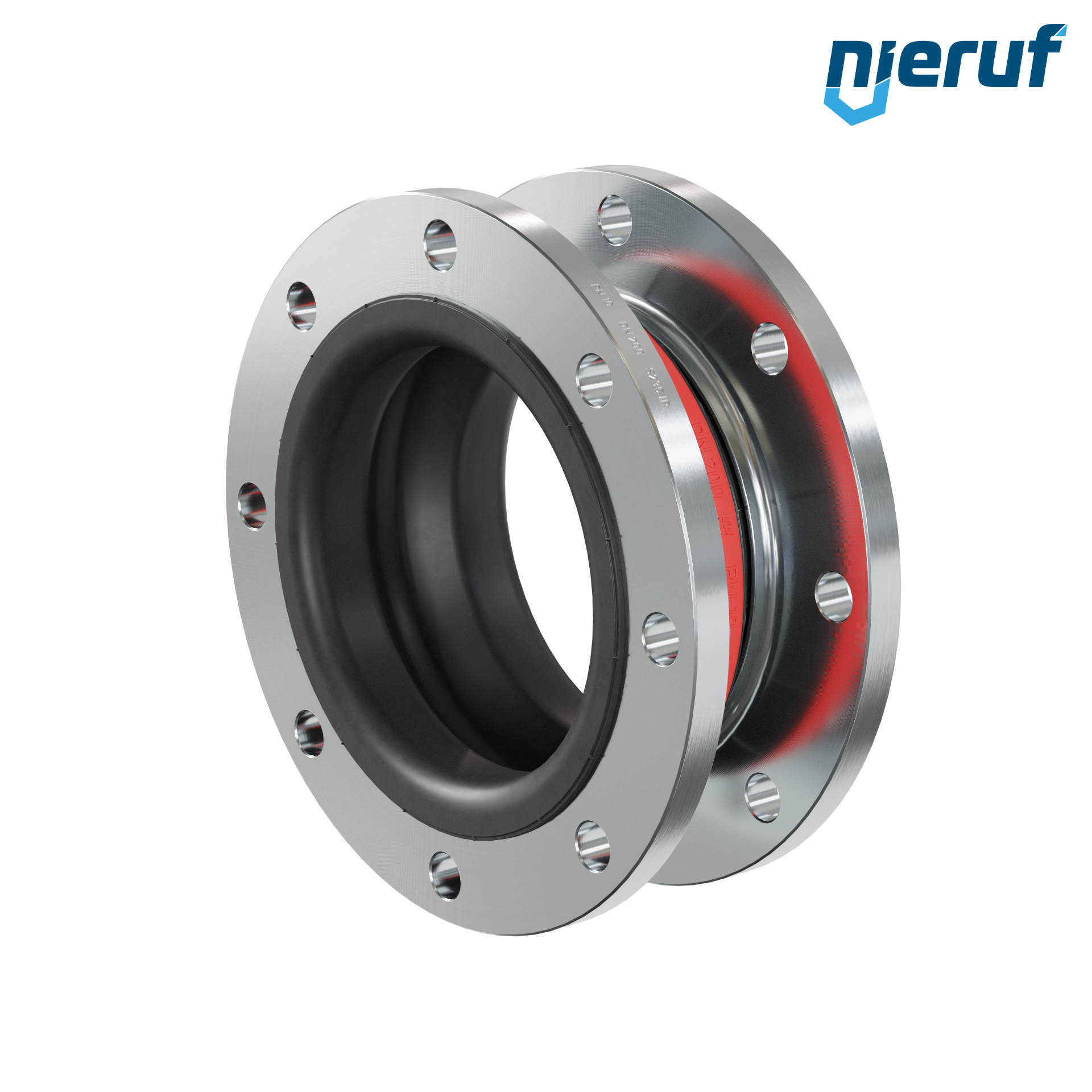 Ce compensateur en caoutchouc de haute qualité avec joint EPDM et brides en acier est homologué ACS pour l'eau potable. Le modèle peut être étendu avec un revêtement en PTFE, des anneaux de support de vide et d'autres options sur demande.