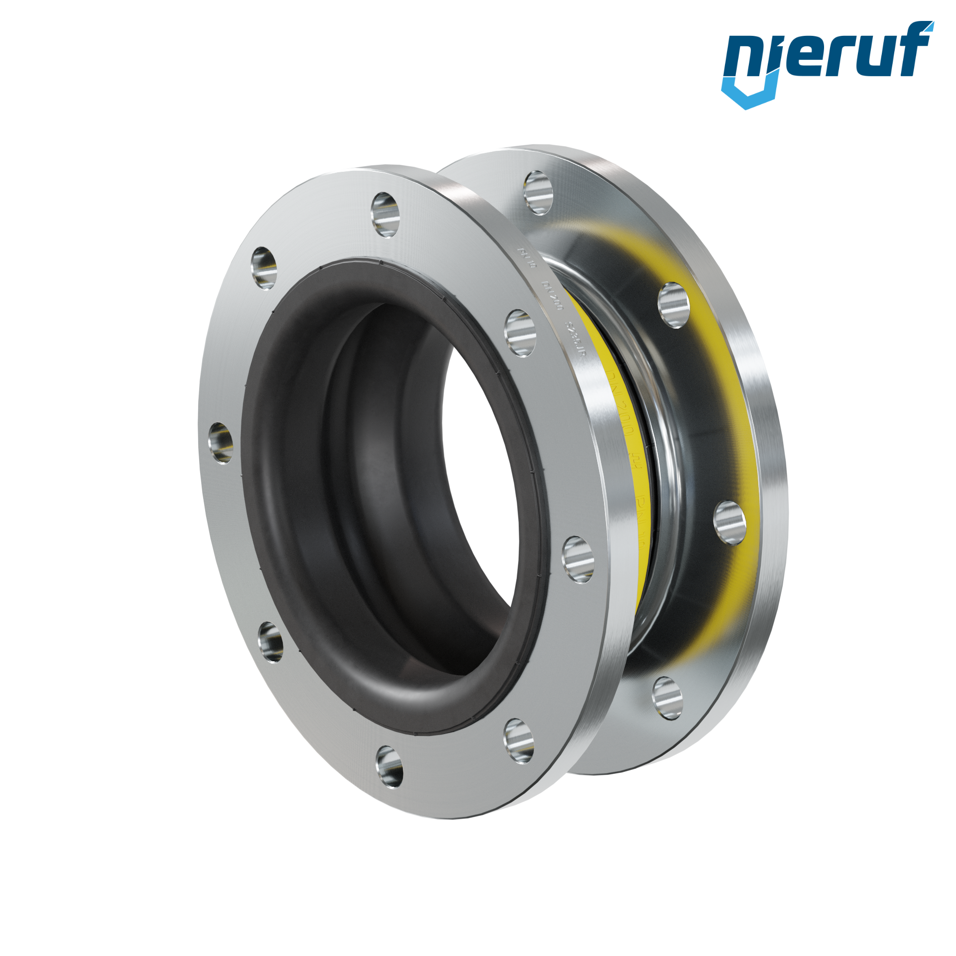 Compensateur DN200 avec manchon NBR et bride en acier pour fluides liquides et gazeux (pas de vapeur)