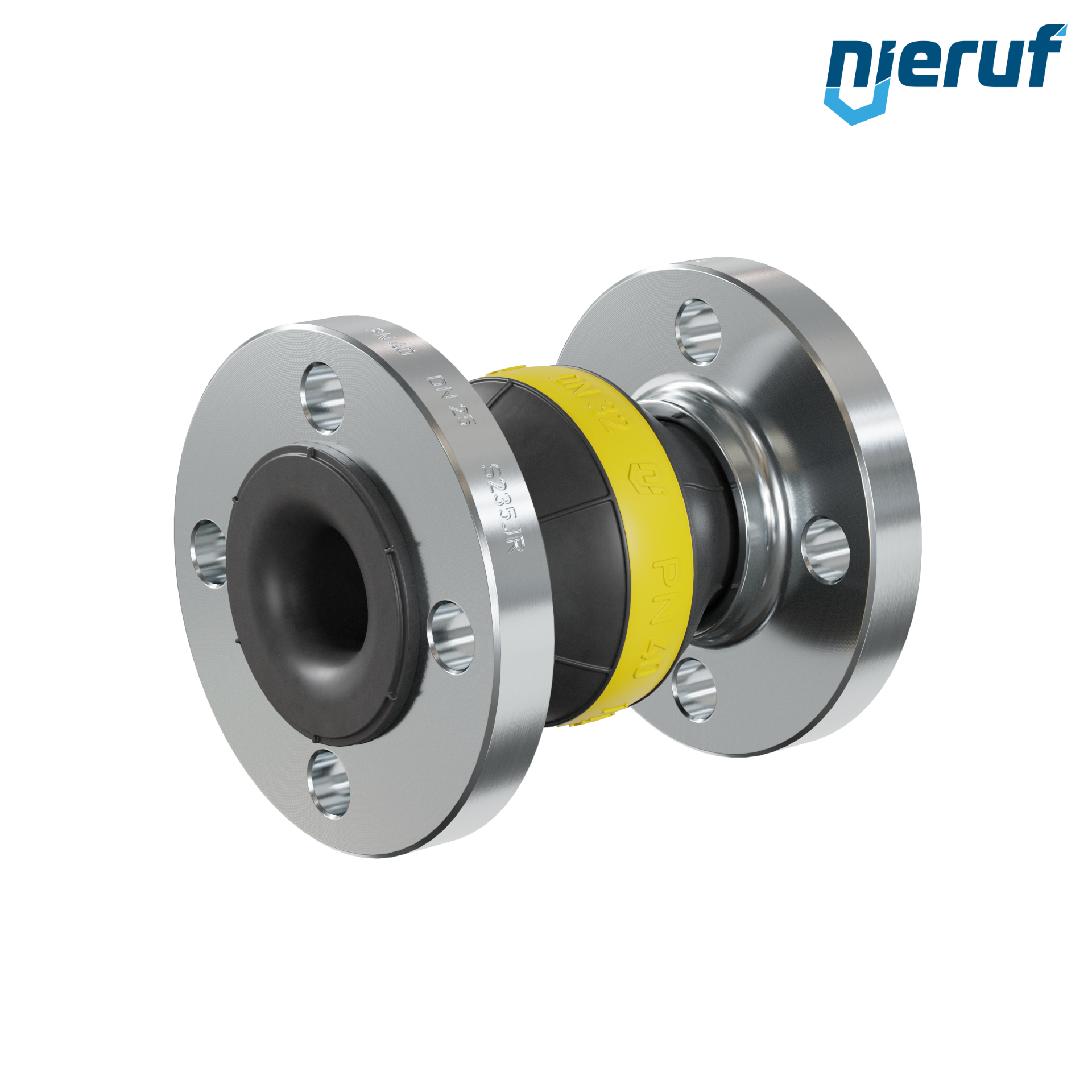 Compensateur KP04 DN25 avec manchon NBR et bride en acier pour fluides liquides et gazeux (pas de vapeur)