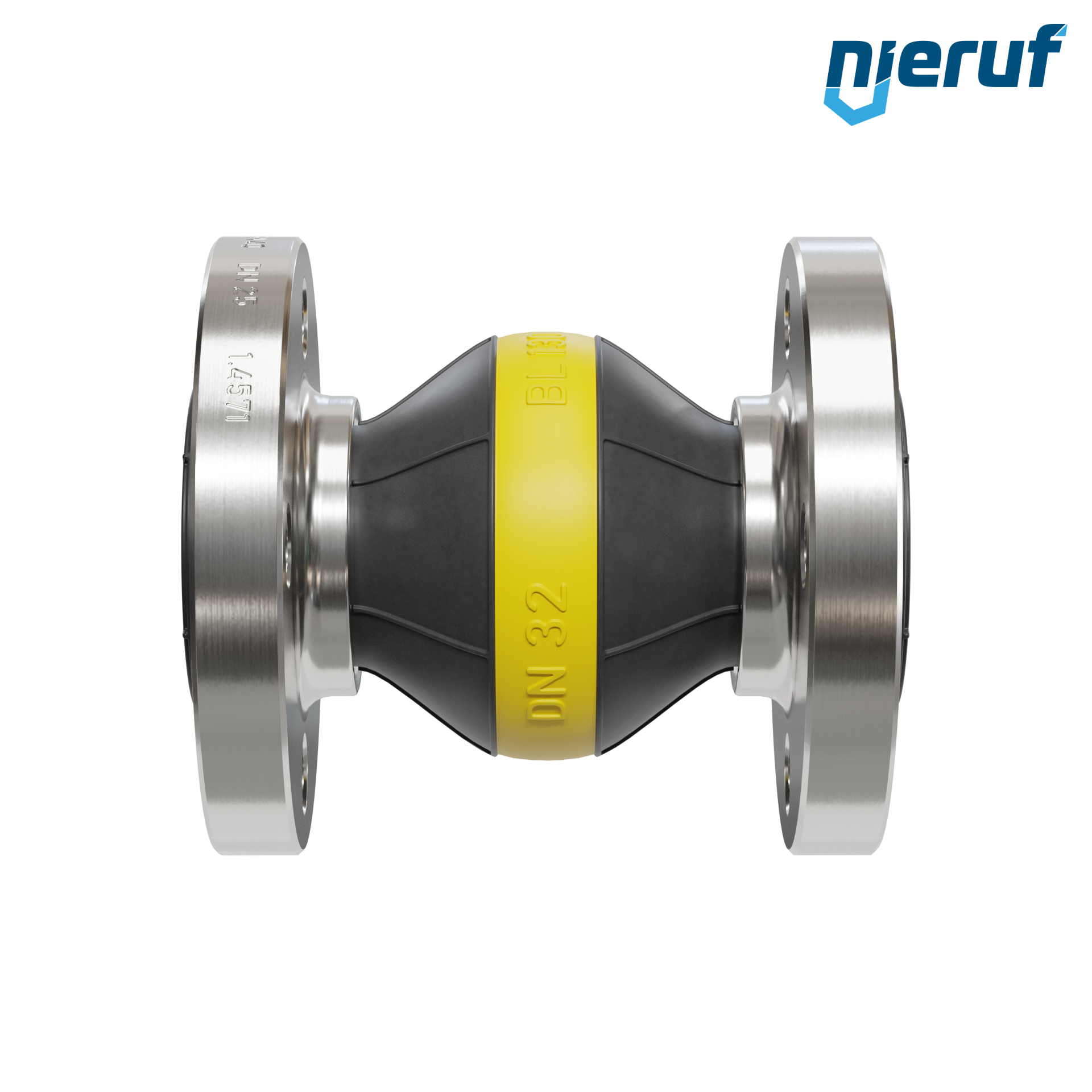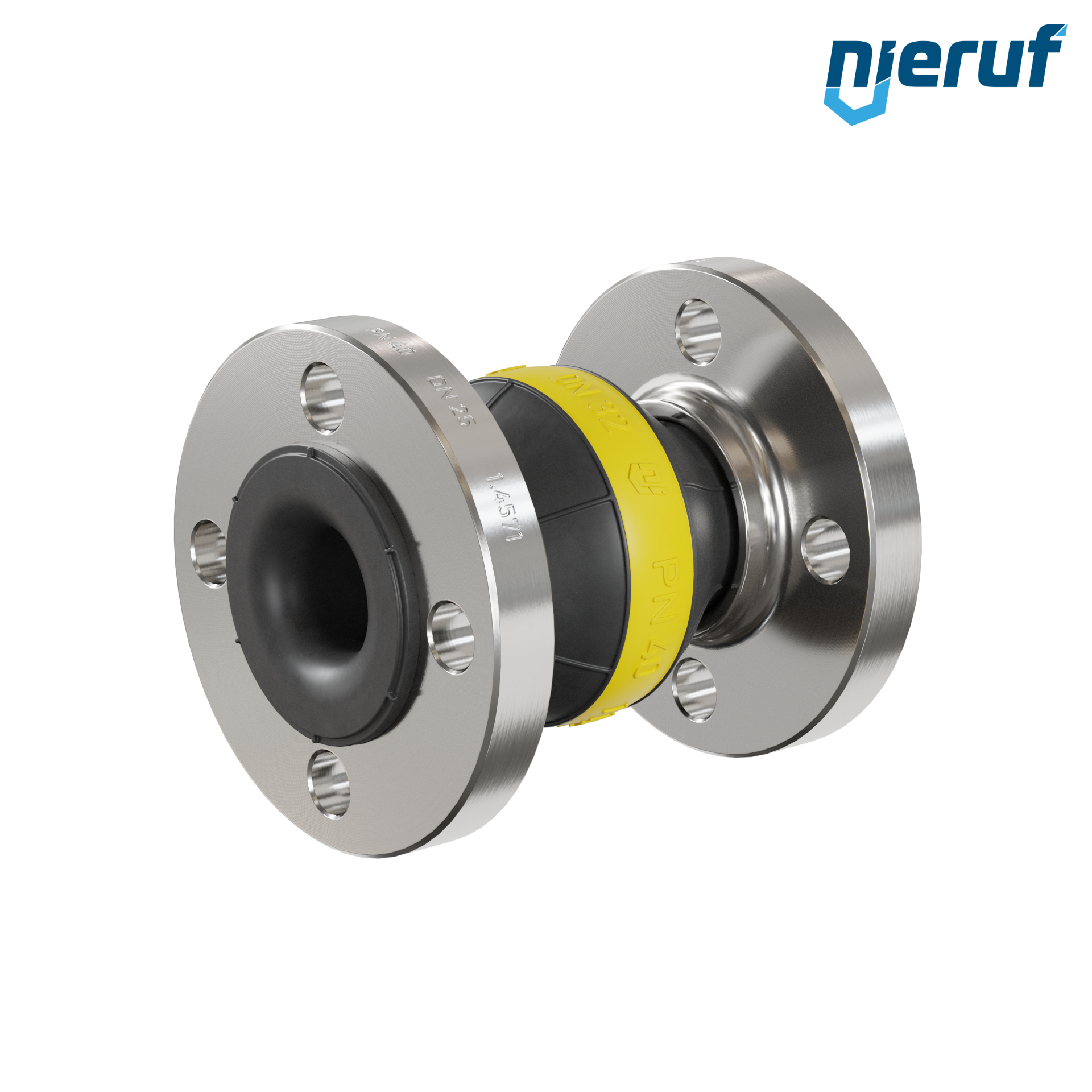 Compensateur DN25 avec manchon NBR et bride en acier inoxydable pour fluides liquides et gazeux (pas de vapeur)