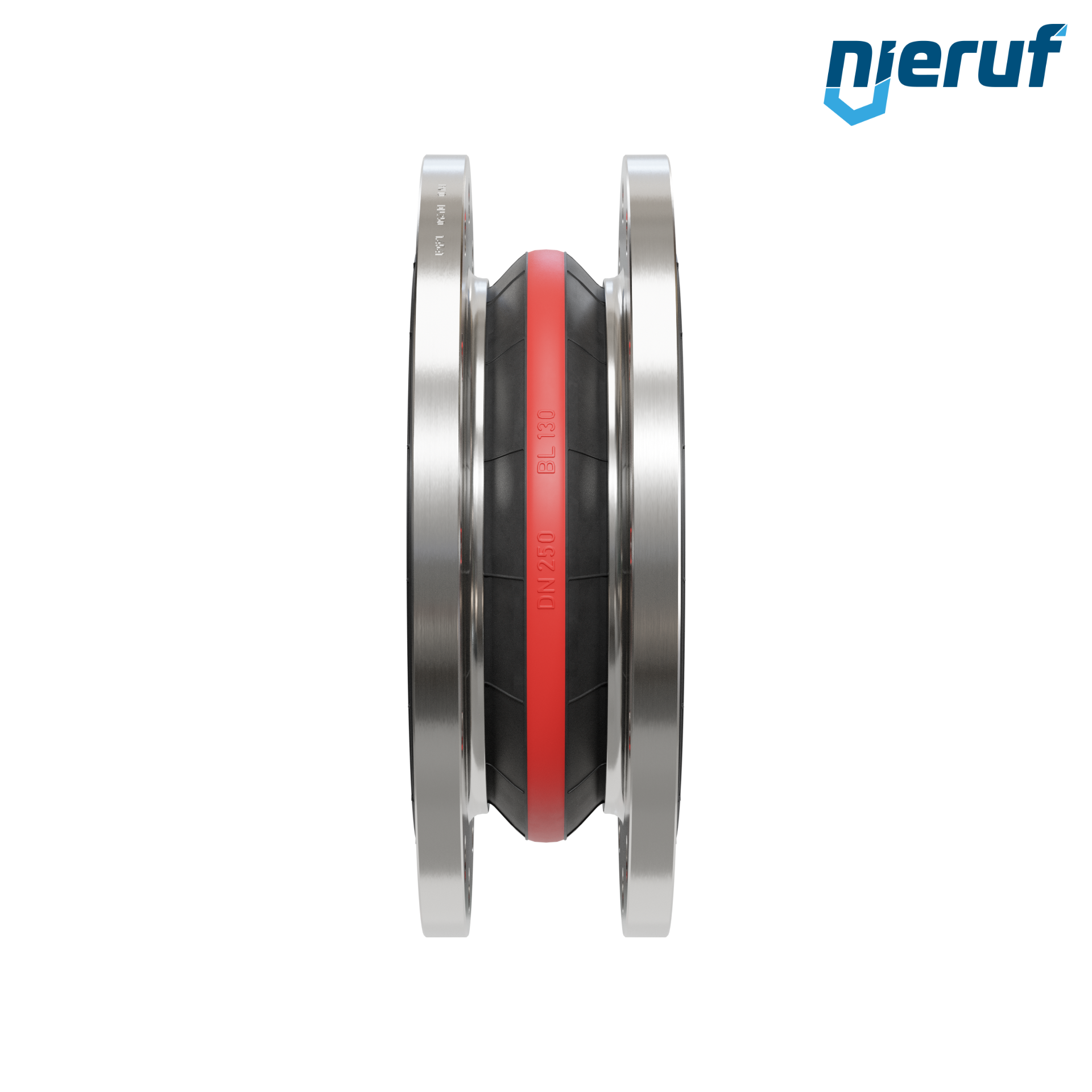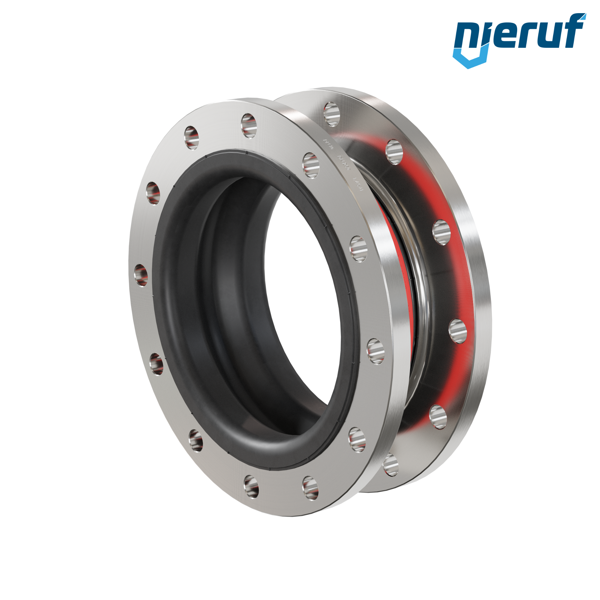 Ce compensateur en caoutchouc de haute qualité avec joint EPDM et brides en acier inoxydable est homologué ACS pour l'eau potable. Le modèle peut être étendu avec un revêtement en PTFE, des anneaux de support de vide et d'autres options sur demande.
