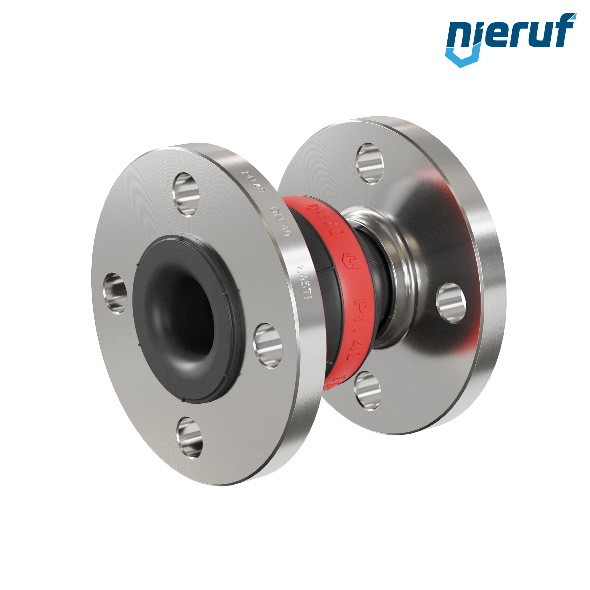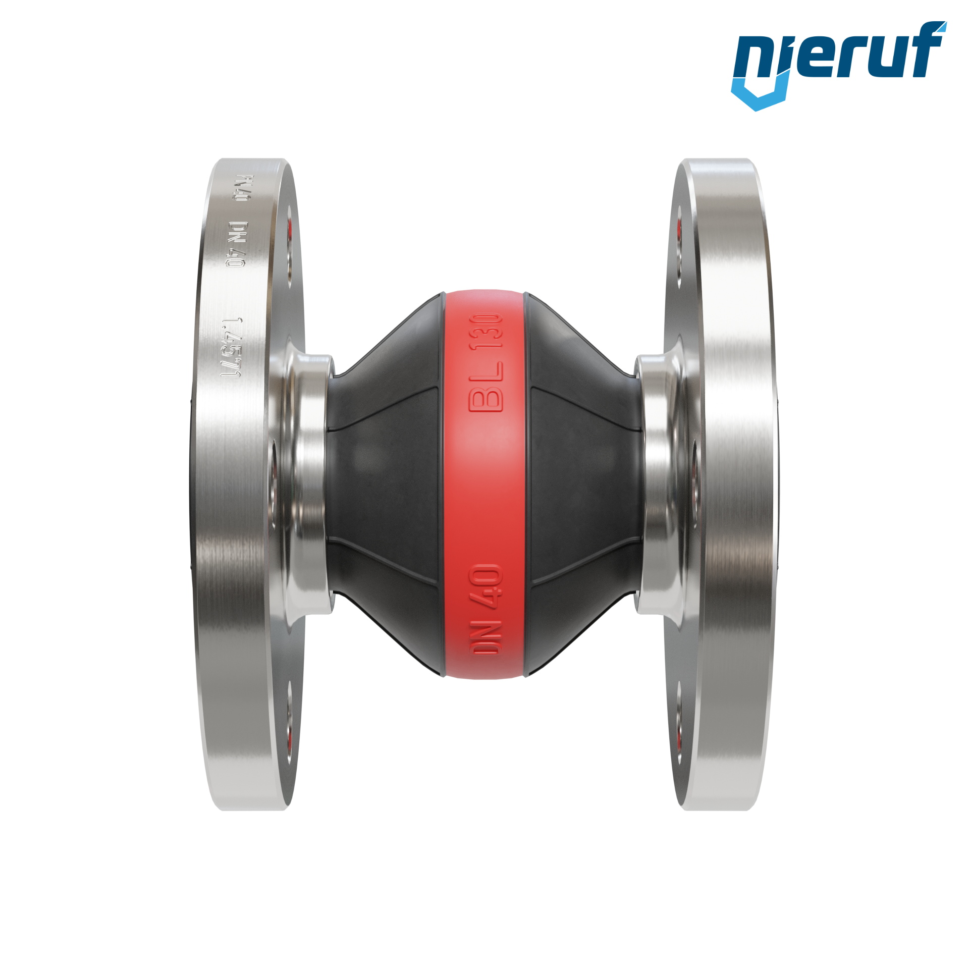 Ce compensateur en caoutchouc de haute qualité avec joint EPDM et brides en acier inoxydable est homologué ACS pour l'eau potable. Le modèle peut être étendu avec un revêtement en PTFE, des anneaux de support de vide et d'autres options sur demande.