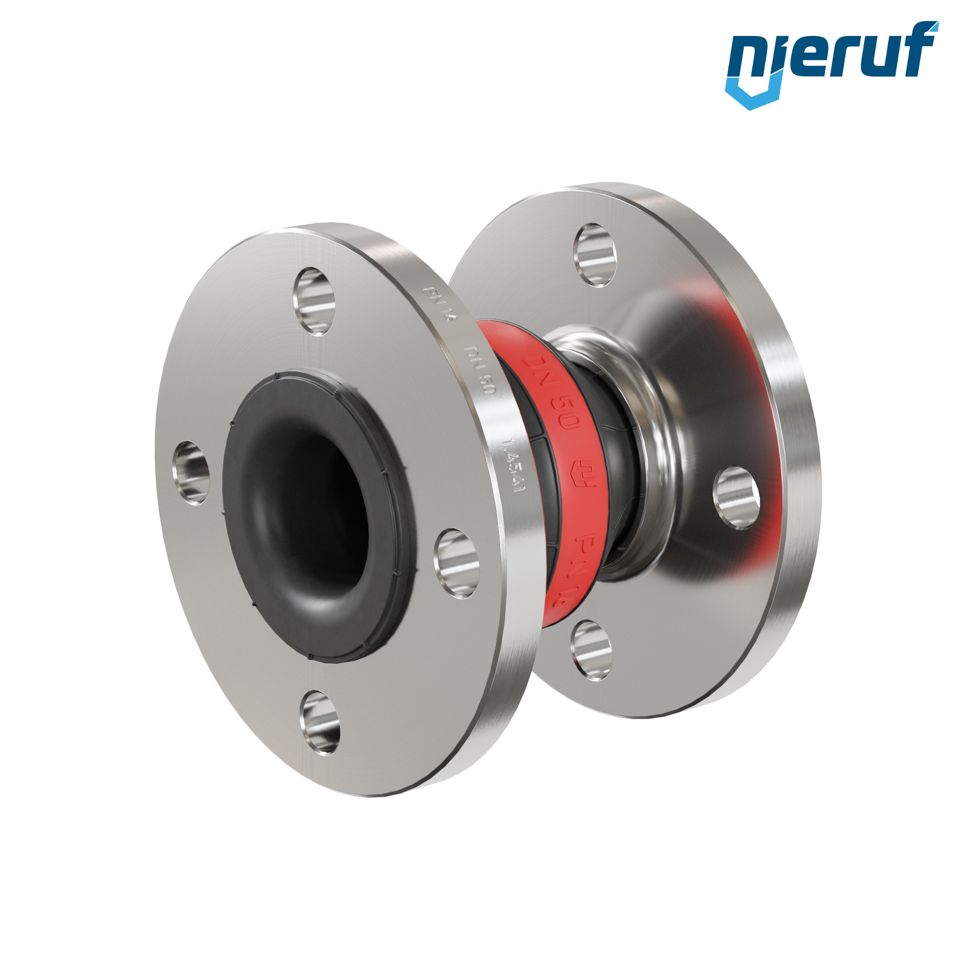 Ce compensateur en caoutchouc de haute qualité avec joint EPDM et brides en acier inoxydable est homologué ACS pour l'eau potable. Le modèle peut être étendu avec un revêtement en PTFE, des anneaux de support de vide et d'autres options sur demande.