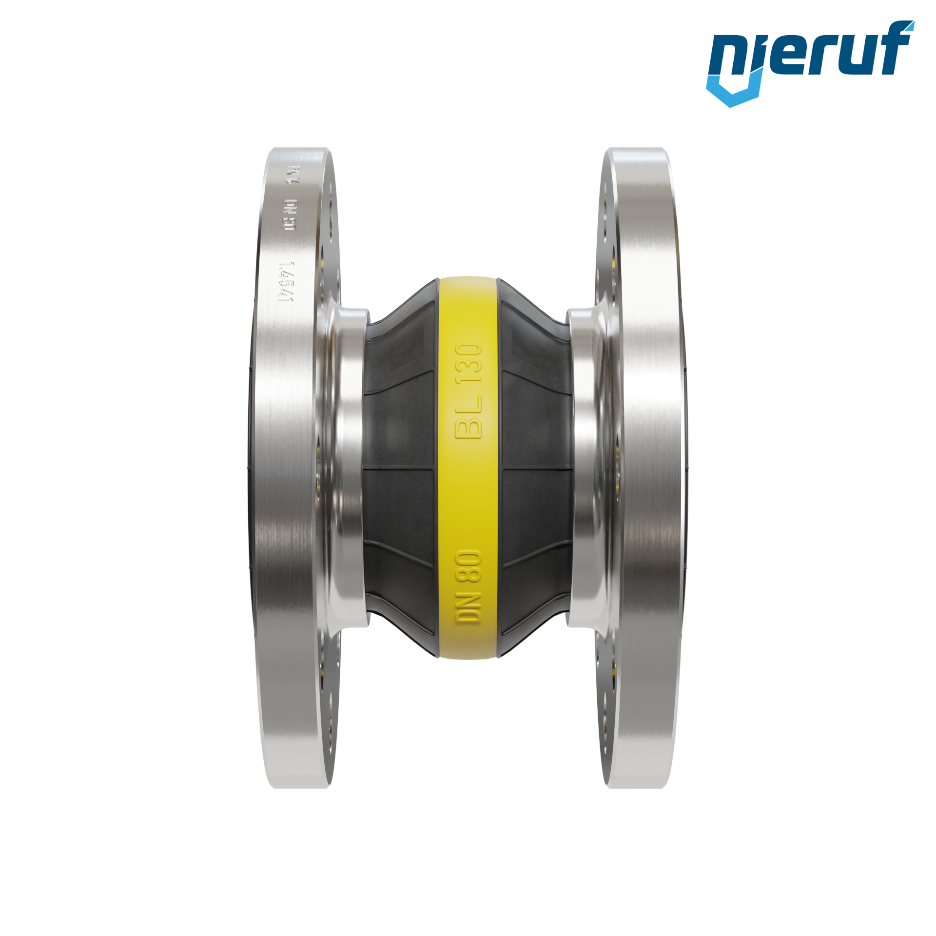 Compensateur DN80 avec manchon NBR et bride en acier inoxydable pour fluides liquides et gazeux (pas de vapeur)