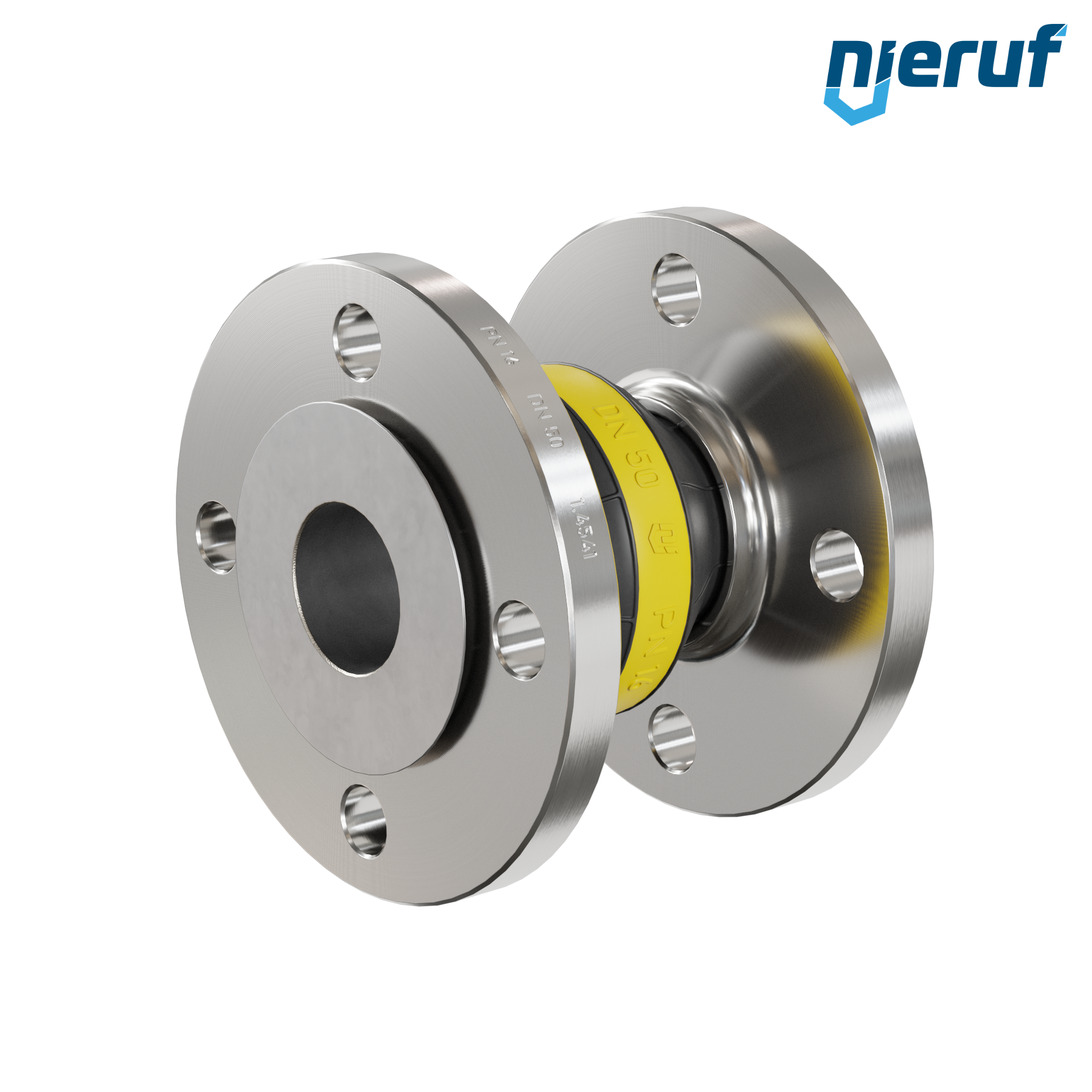 Compensateur DN50 déflecteur pour fluides liquides et gazeux (pas de vapeur) avec brides en acier inoxydable & NBR joint