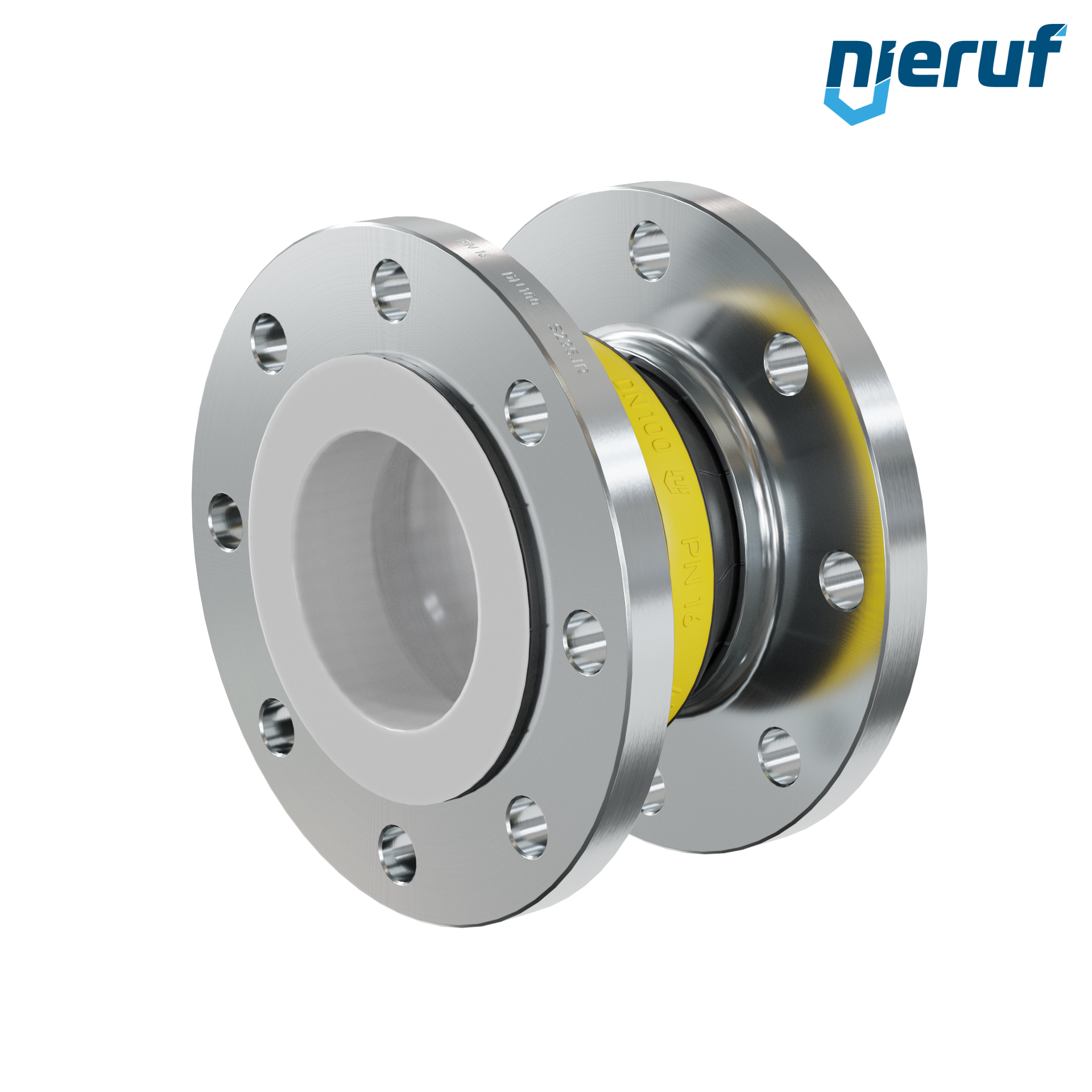 Compensateur DN100 Revêtement en PTFE pour fluides liquides et gazeux (pas de vapeur) avec brides en acier & NBR joint