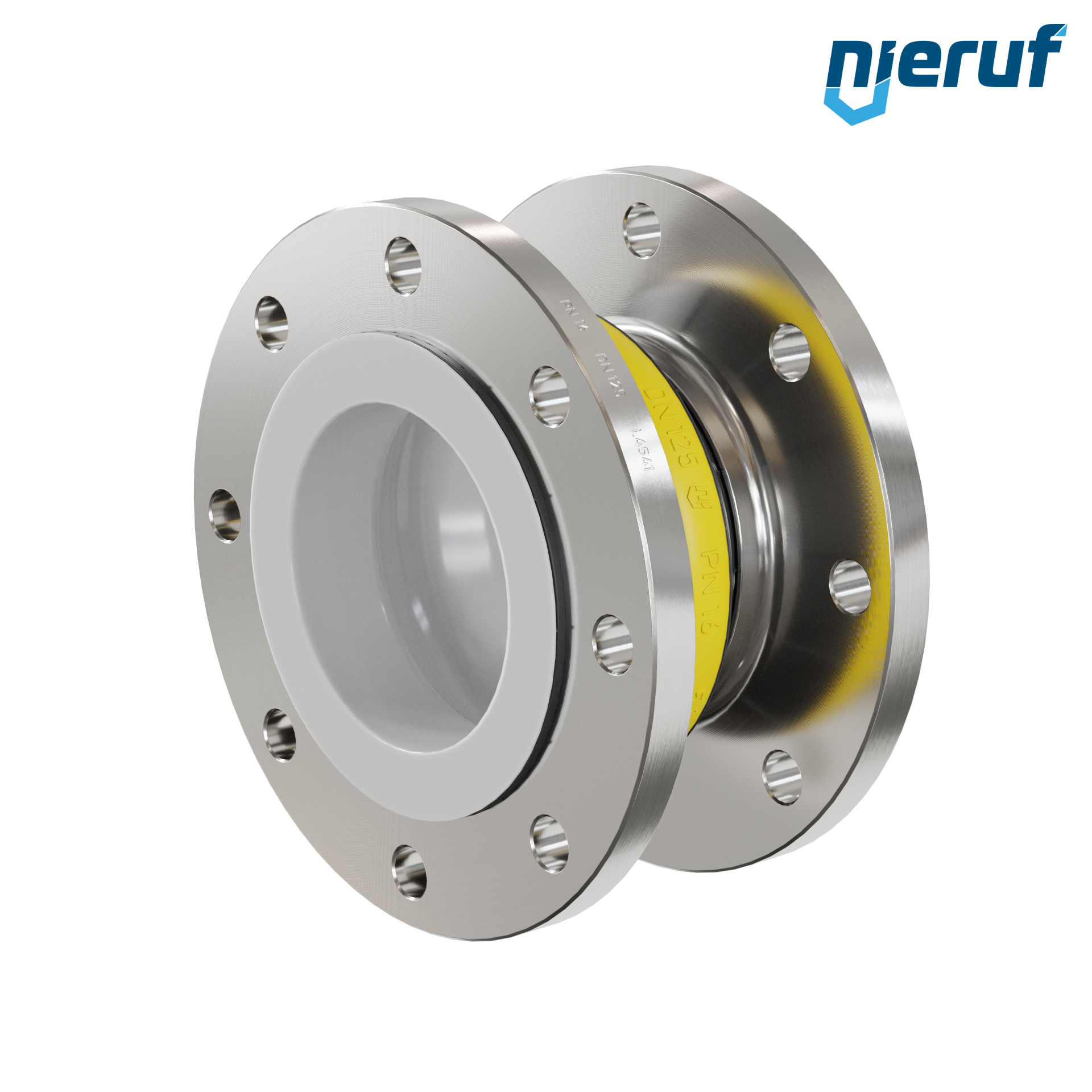 Compensateur DN125 Revêtement en PTFE pour fluides liquides et gazeux (pas de vapeur) avec brides en acier inoxydable & NBR joint
