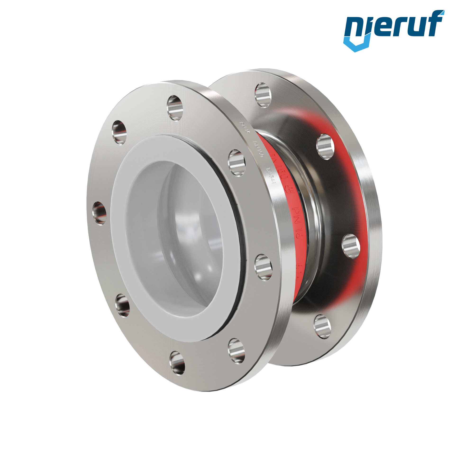 Compensateur DN150 Revêtement en PTFE pour fluides liquides et gazeux (pas de vapeur) avec brides en acier inoxydable & EPDM joint incl. Certification ACS