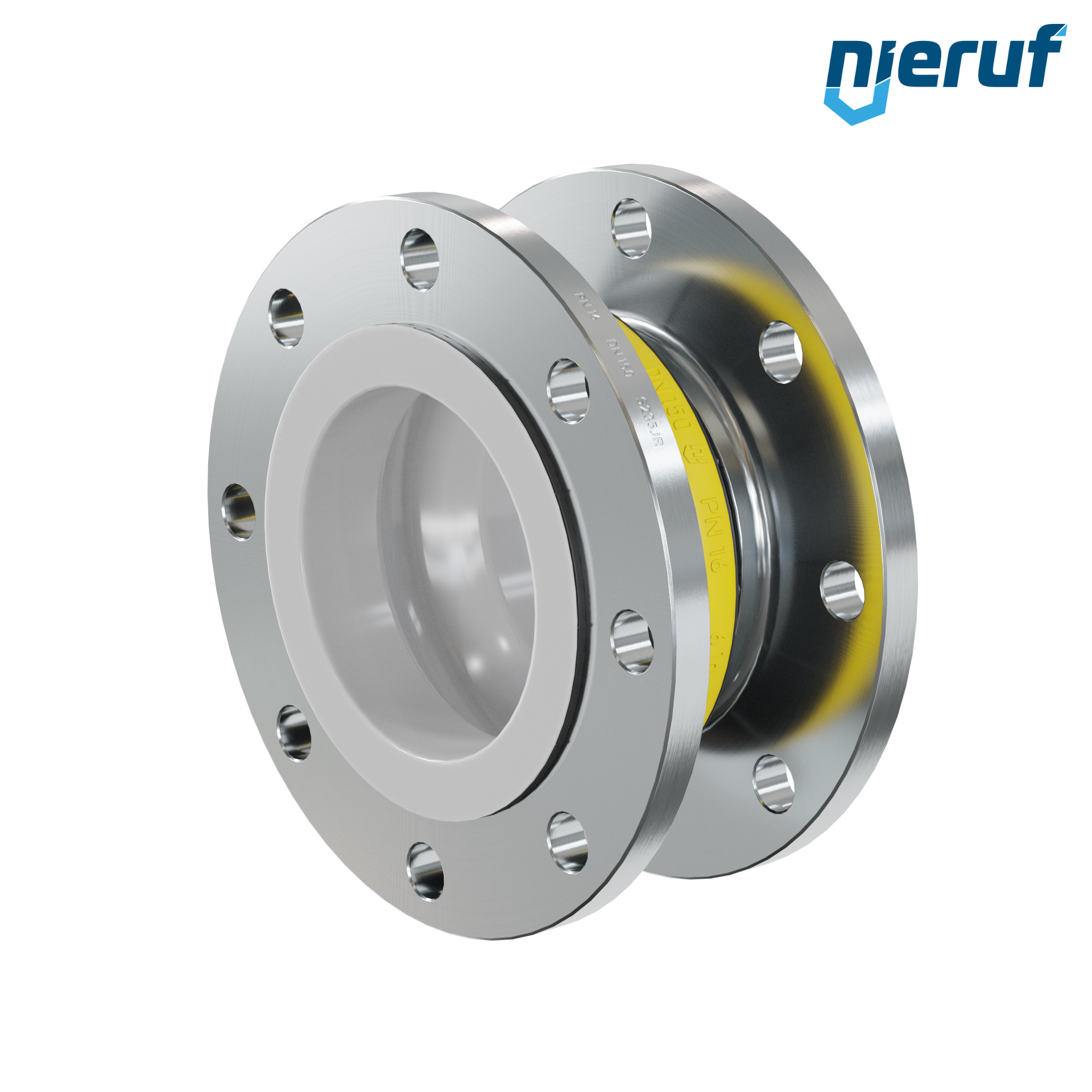 Compensateur DN150 Revêtement en PTFE pour fluides liquides et gazeux (pas de vapeur) avec brides en acier & NBR joint
