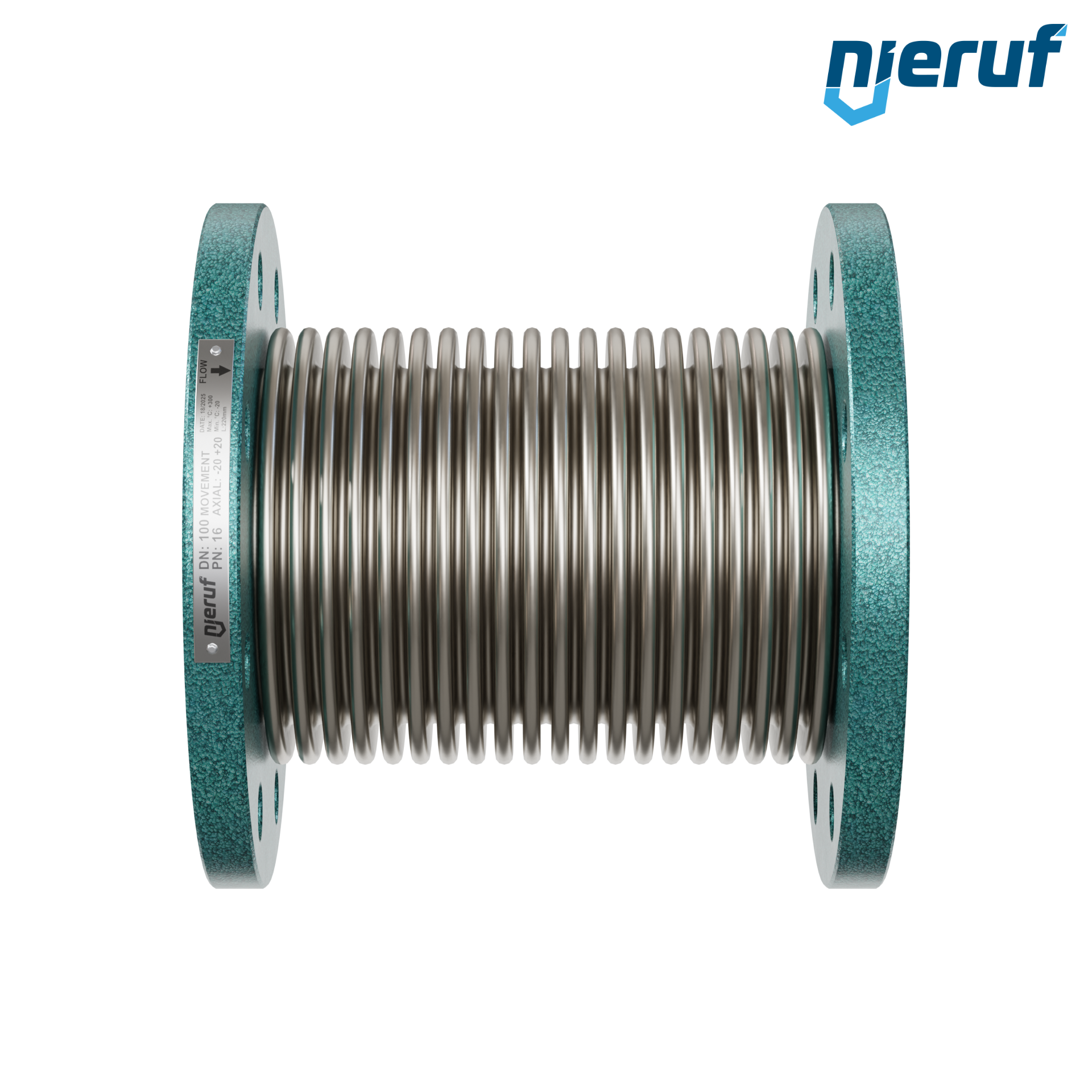 Compensateur axial DN100, manchon et soufflet d'étanchéité en acier inoxydable 1.4541 / SS321 bride DIN EN 1092-1 PN 10/16