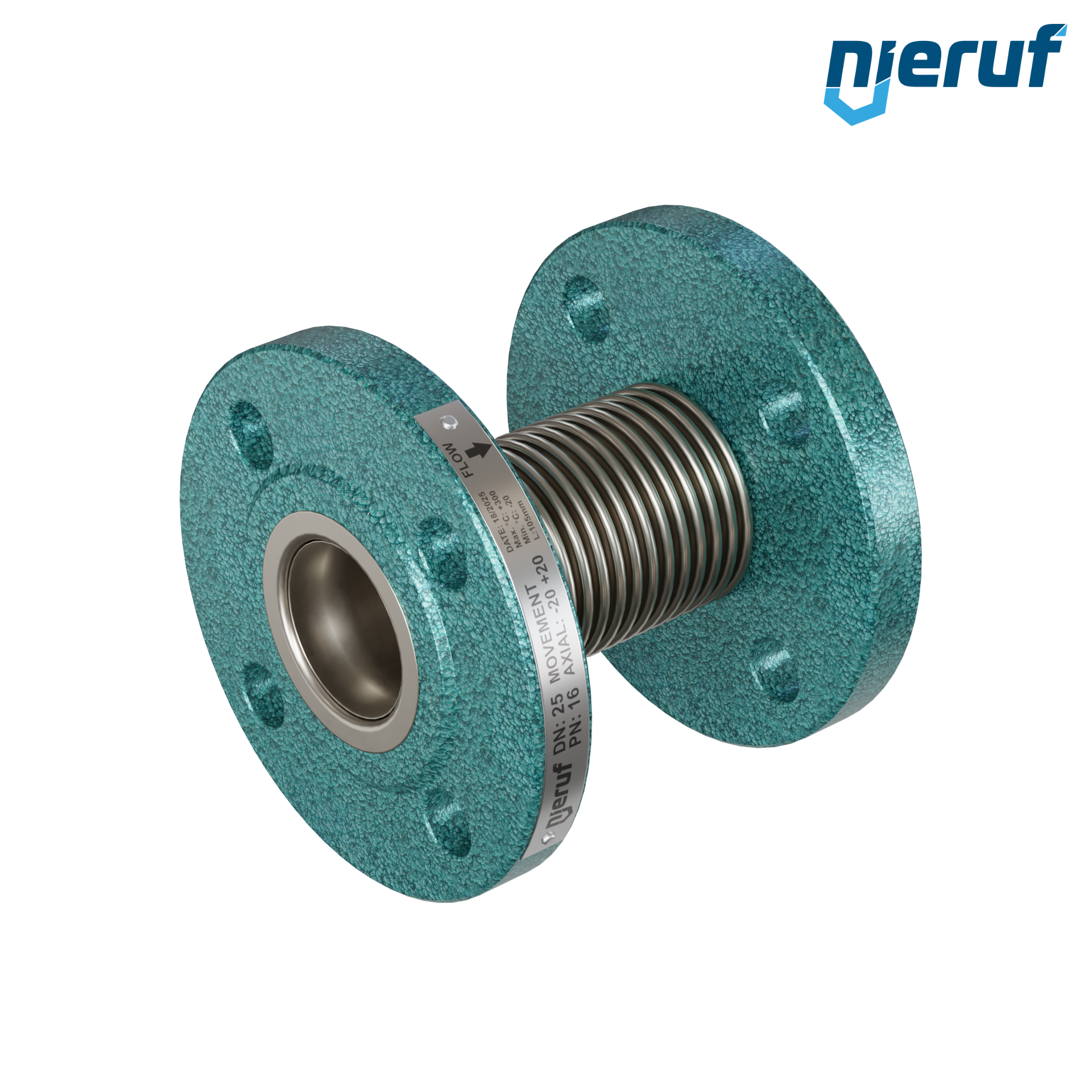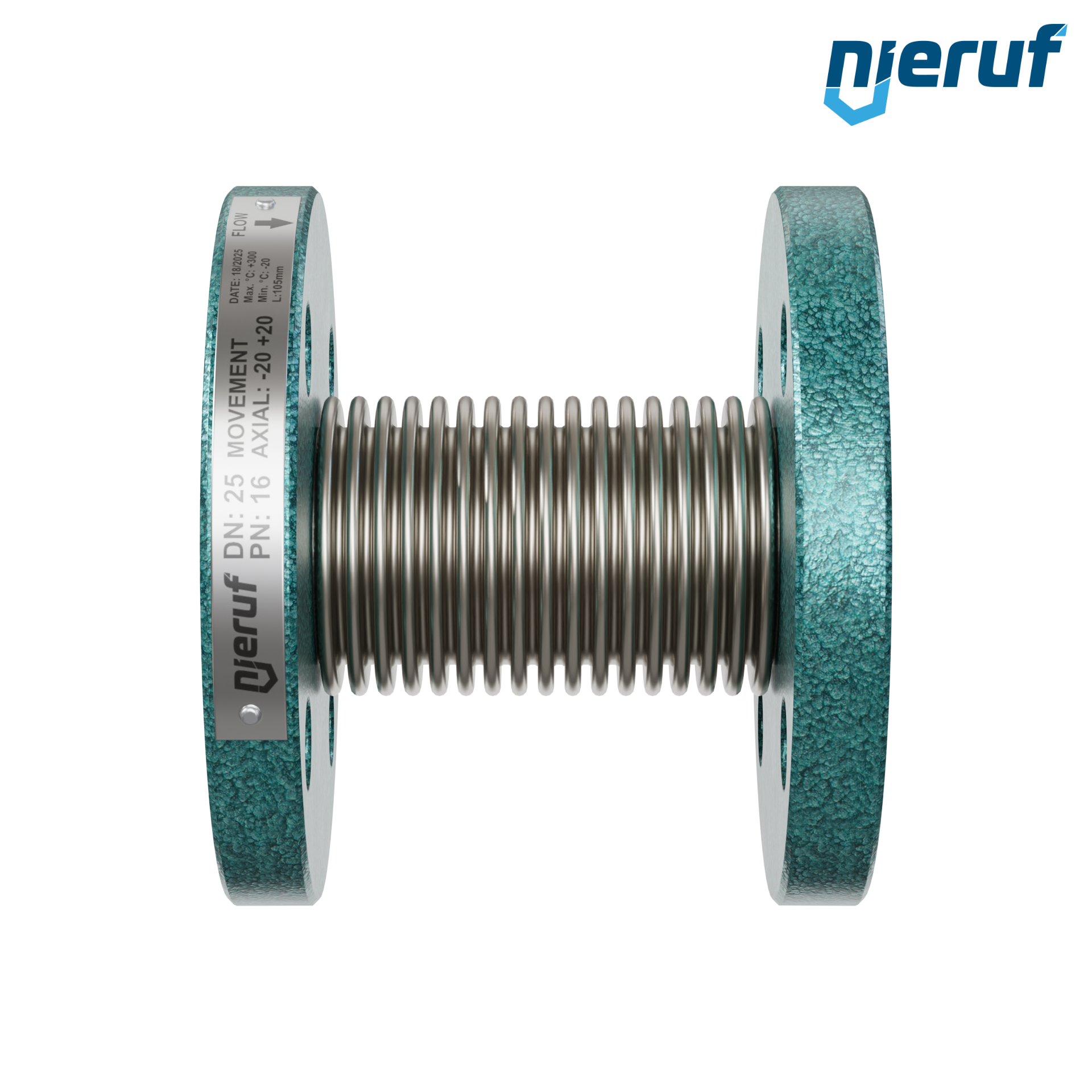 Compensateur axial DN25, manchon et soufflet d'étanchéité en acier inoxydable 1.4541 / SS321 bride DIN EN 1092-1 PN 10/16