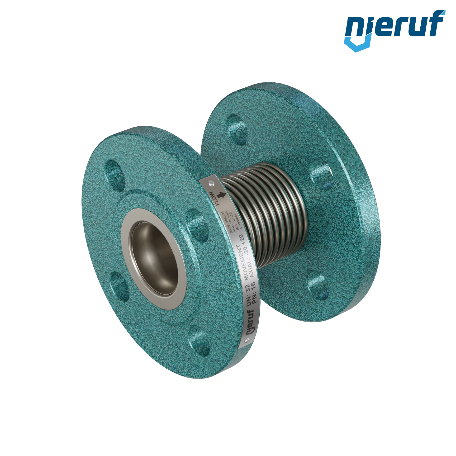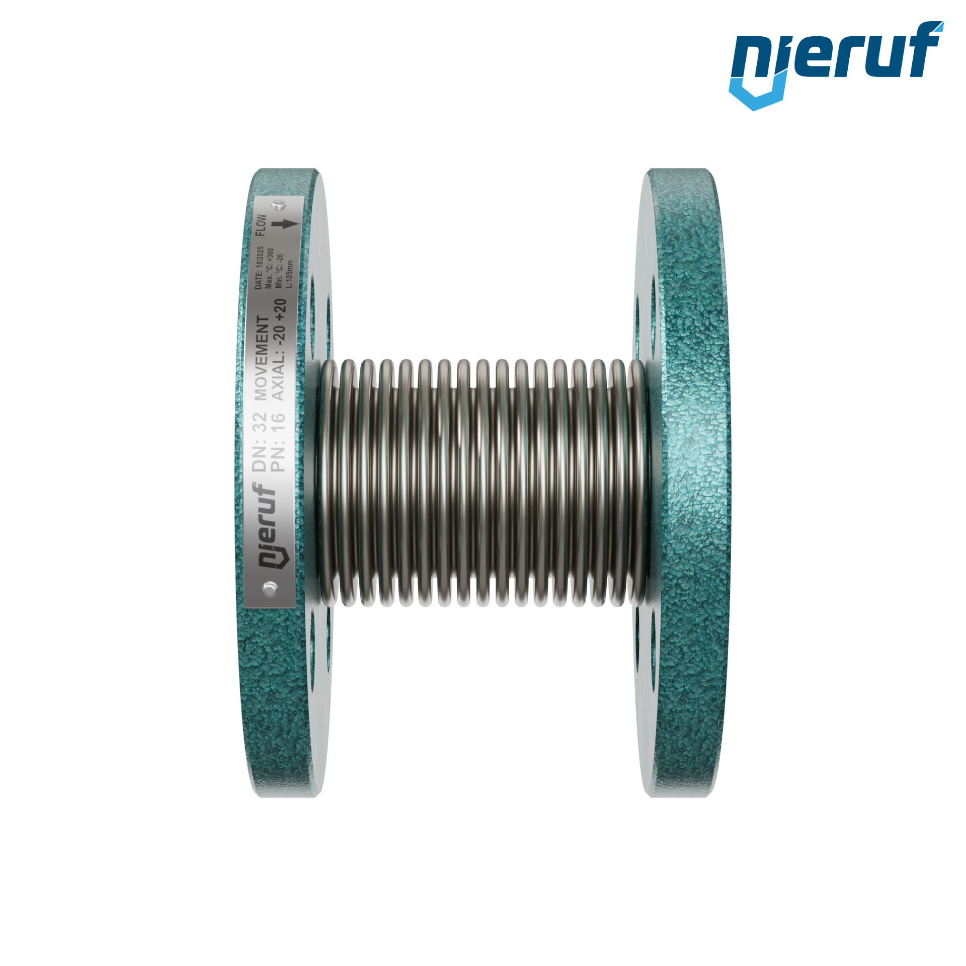 Compensateur axial DN32, manchon et soufflet d'étanchéité en acier inoxydable 1.4541 / SS321 bride DIN EN 1092-1 PN 10/16