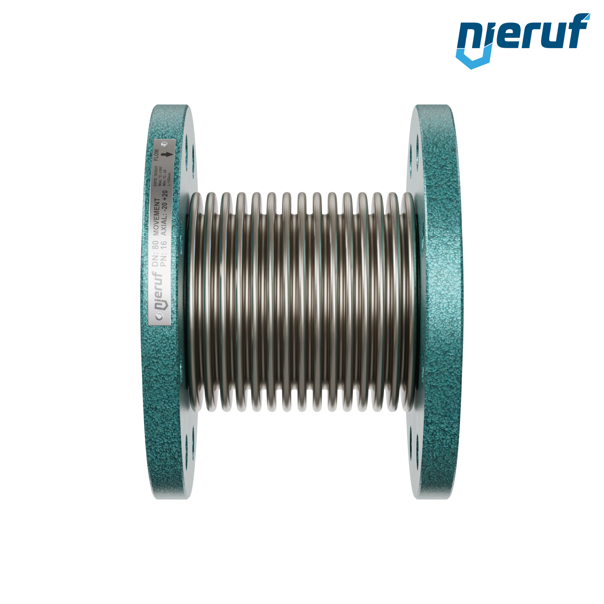 Compensateur axial DN80, manchon et soufflet d'étanchéité en acier inoxydable 1.4541 / SS321 bride DIN EN 1092-1 PN 10/16