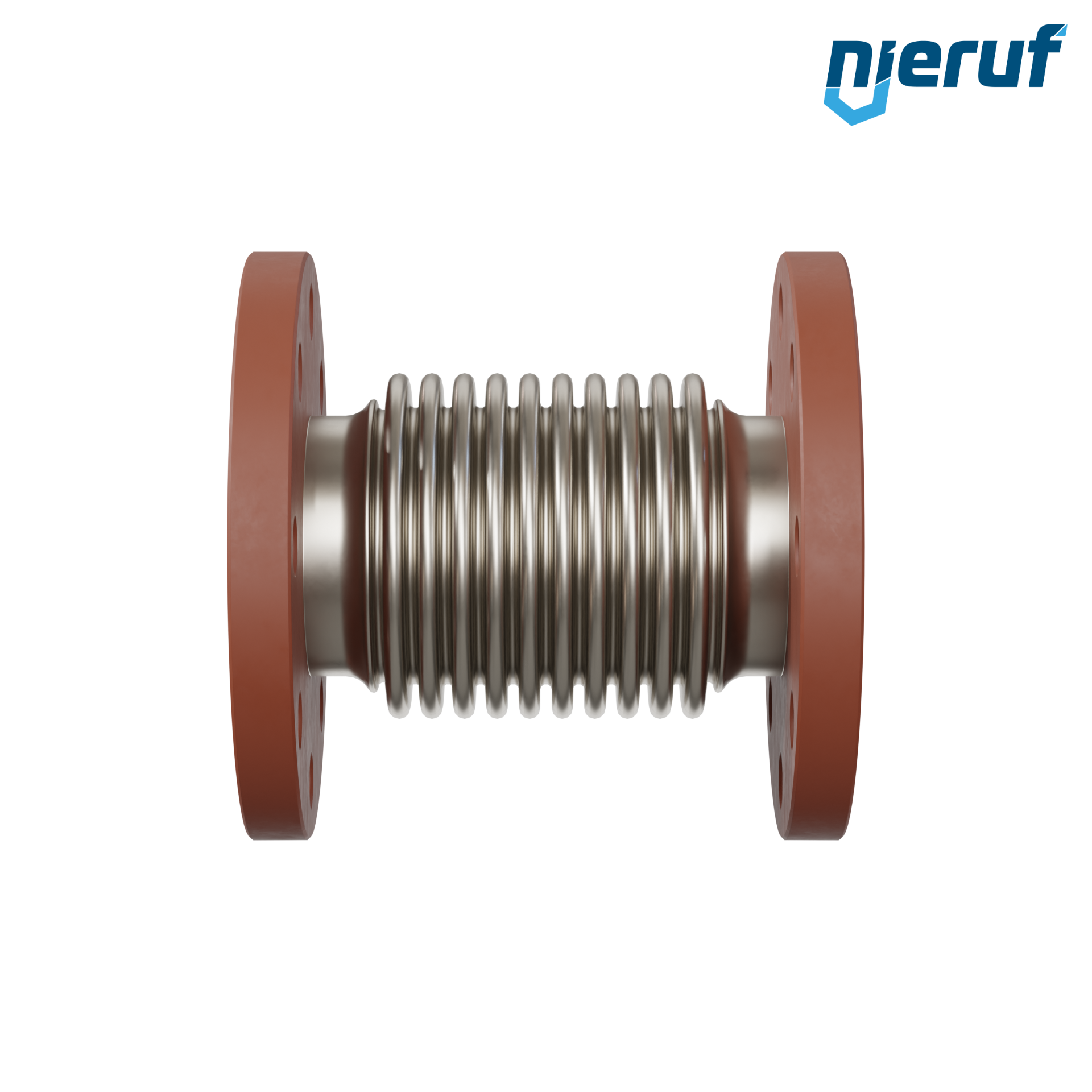 Ce compensateur axial de haute qualité avec soufflet en acier inoxydable et brides fixes en acier est conçu pour une utilisation à des températures élevées et dans des conditions difficiles. Ce type peut également être proposé dans d'autres diamètres nominaux, niveaux de pression et longueurs, ainsi qu'avec un revêtement spécial, et peut être complété par un tube conducteur ou un tube de protection.