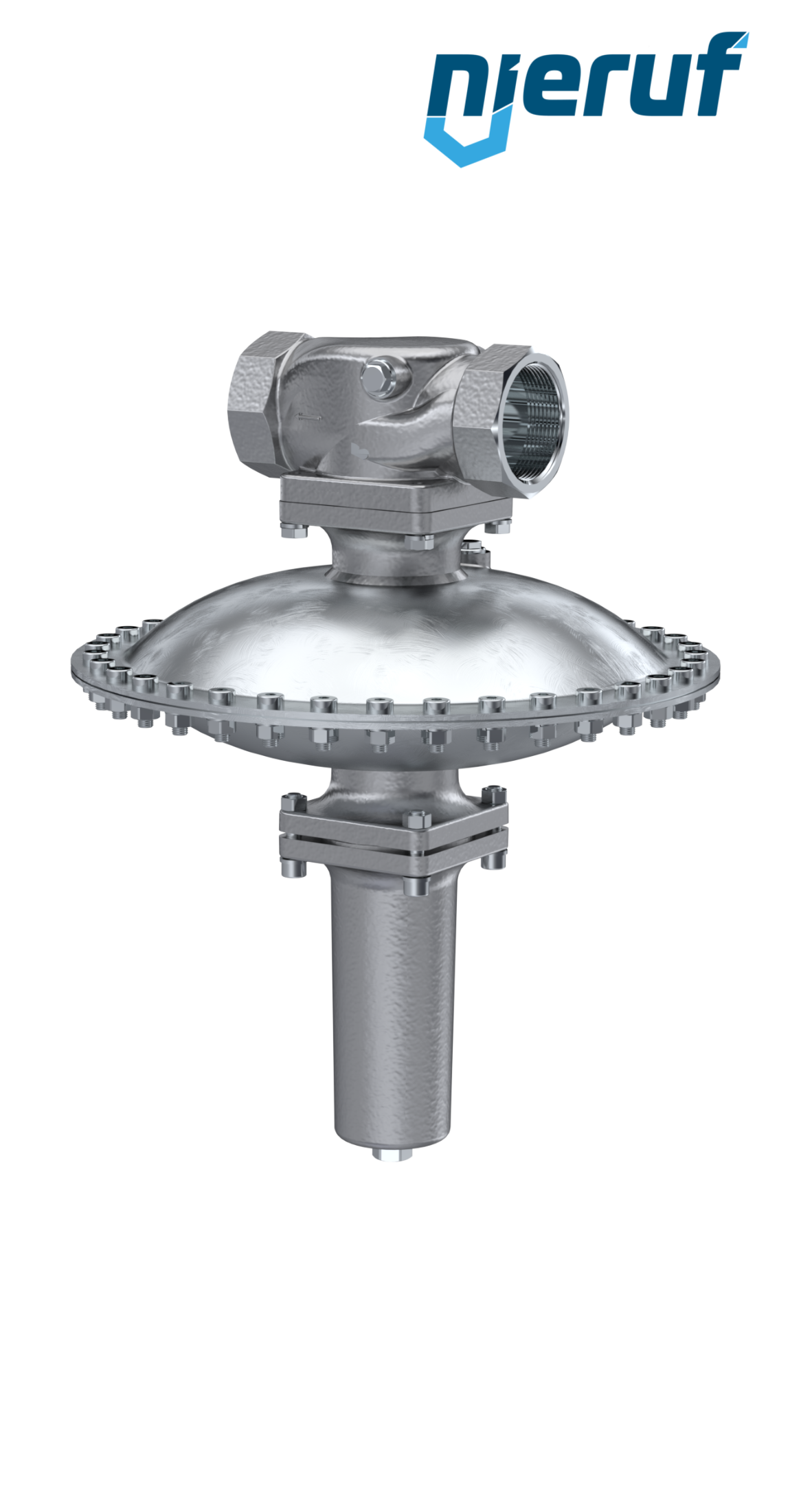 Réducteur de pression en millibars DN40 avec femelle pour substances liquides et gazeuses neutres et joint FKM, pression de réglage 150 - 500 mbar