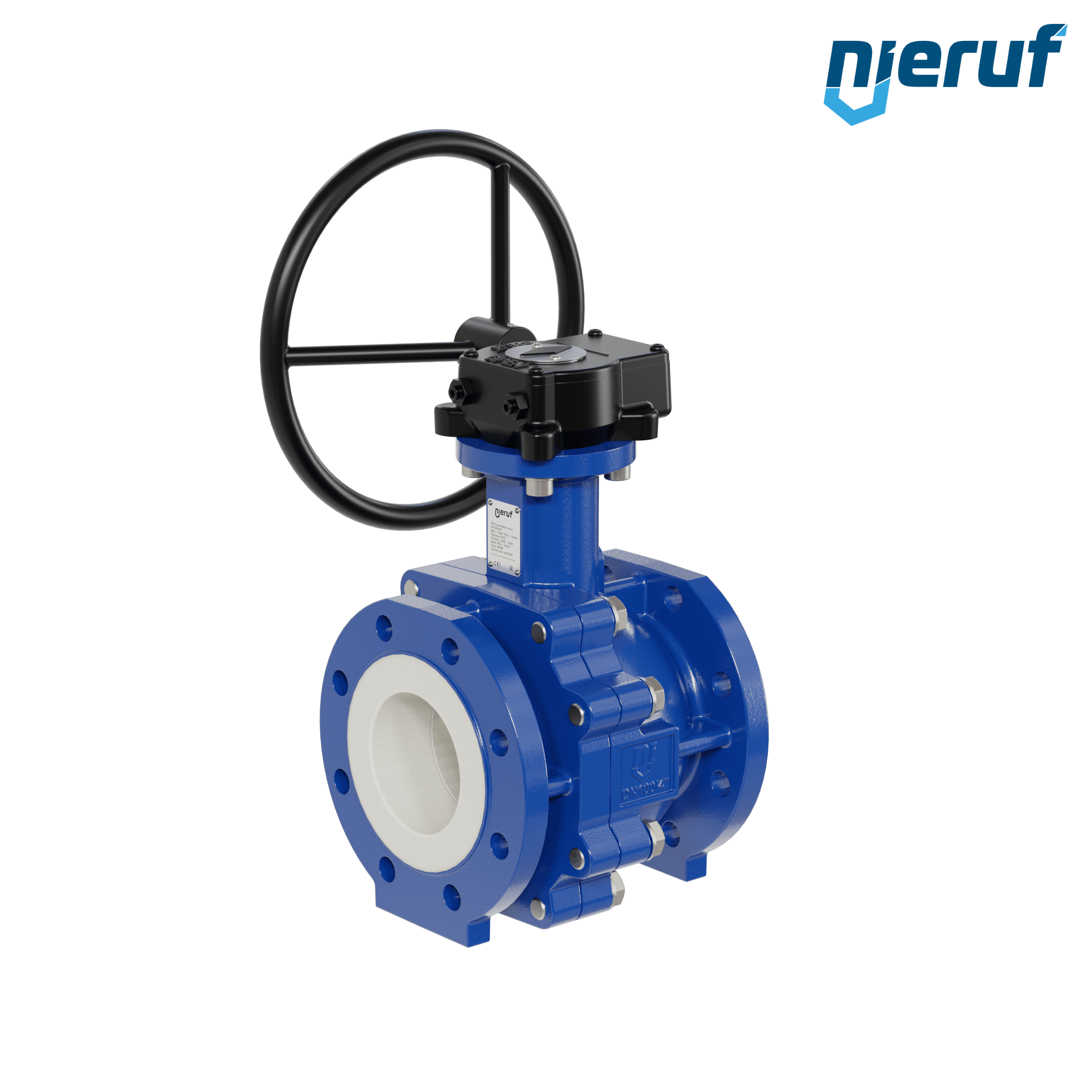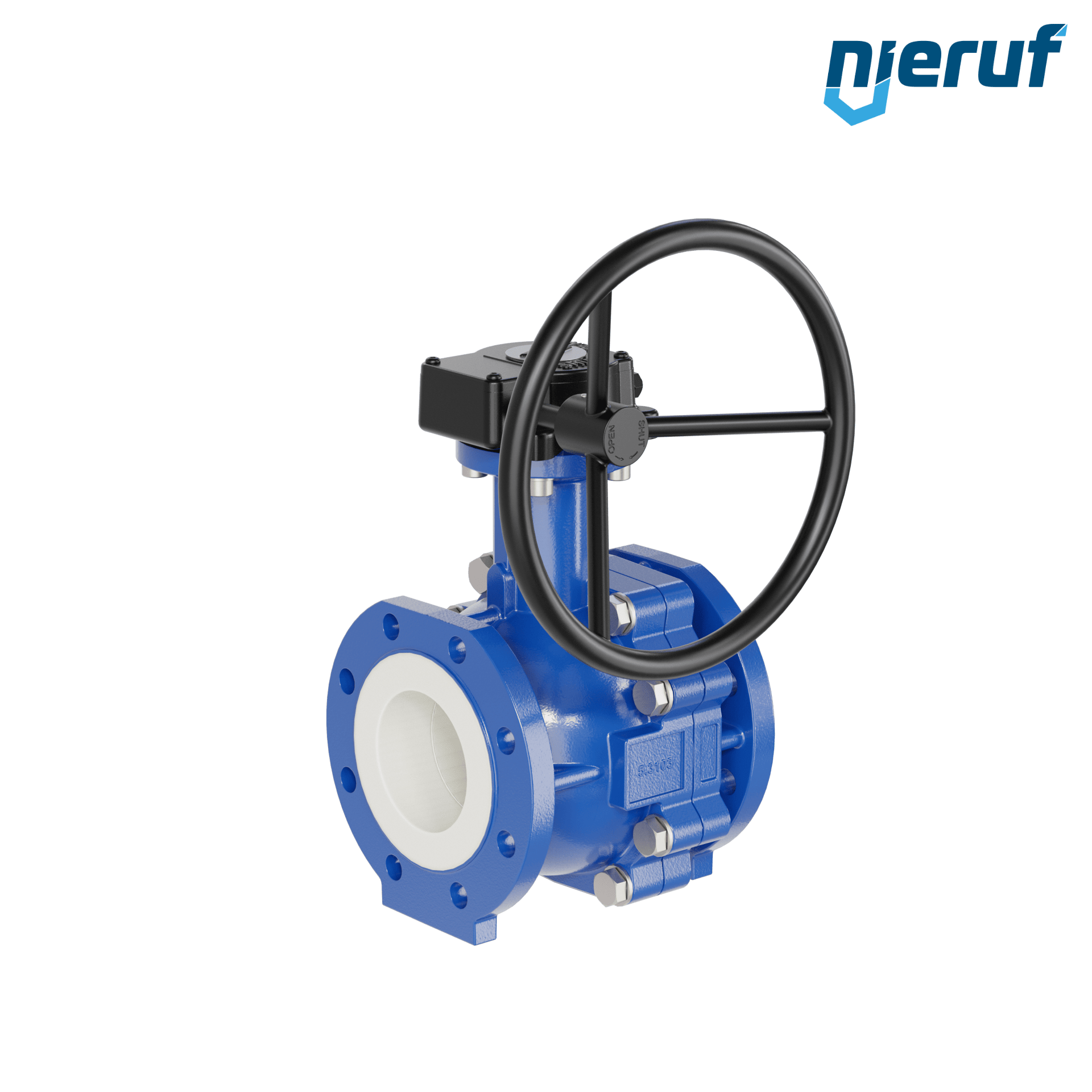 Robinet à boisseau sphérique à bride PFA FK13 DN100 ANSI 150 fonte à graphite sphéroïdal 5.3103 Corps PFA Sphère PTFE pour fluides liquides, gazeux et agressifs avec réducteur manuel