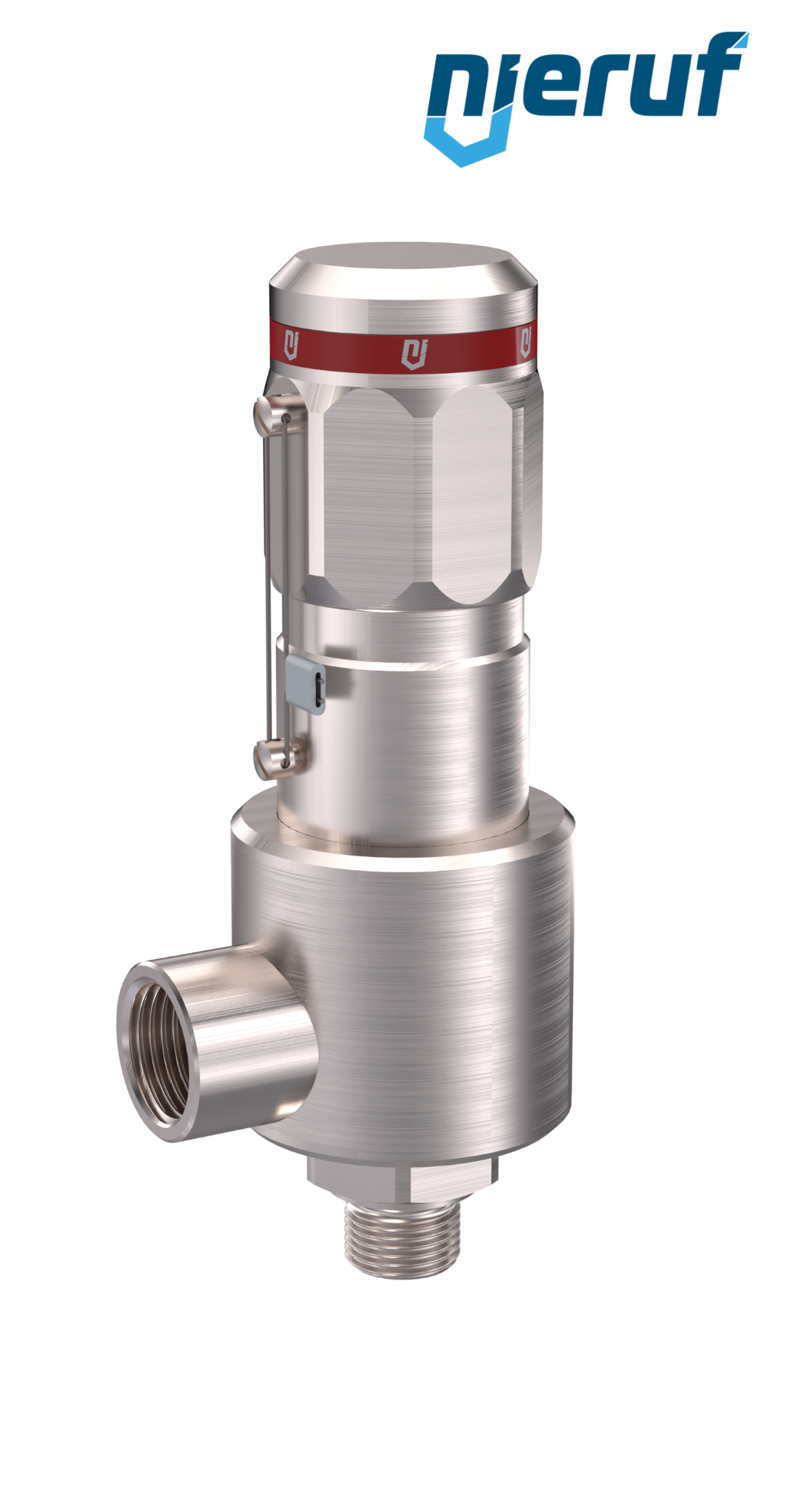 soupape de sûreté DN10 1/4" mâle X 1" femelle avec NPT raccordement SV15 pour fluides gazeux en acier inoxydable joint MD / PAI pression 50,0 - 180,0 bar sans dispositif de levage modèle en équerre