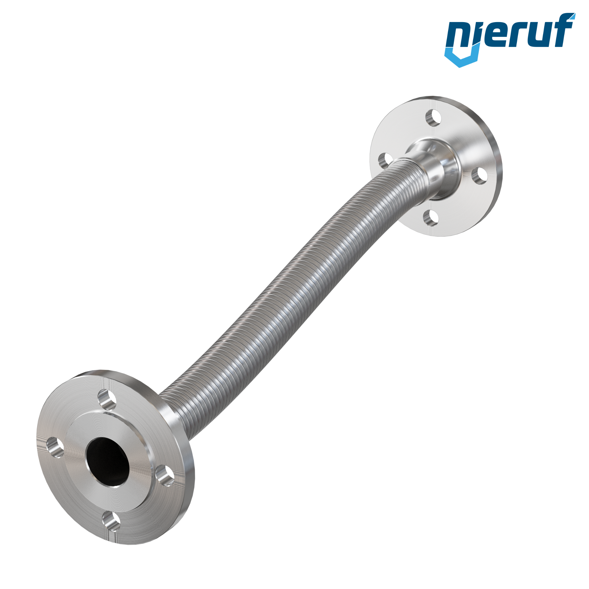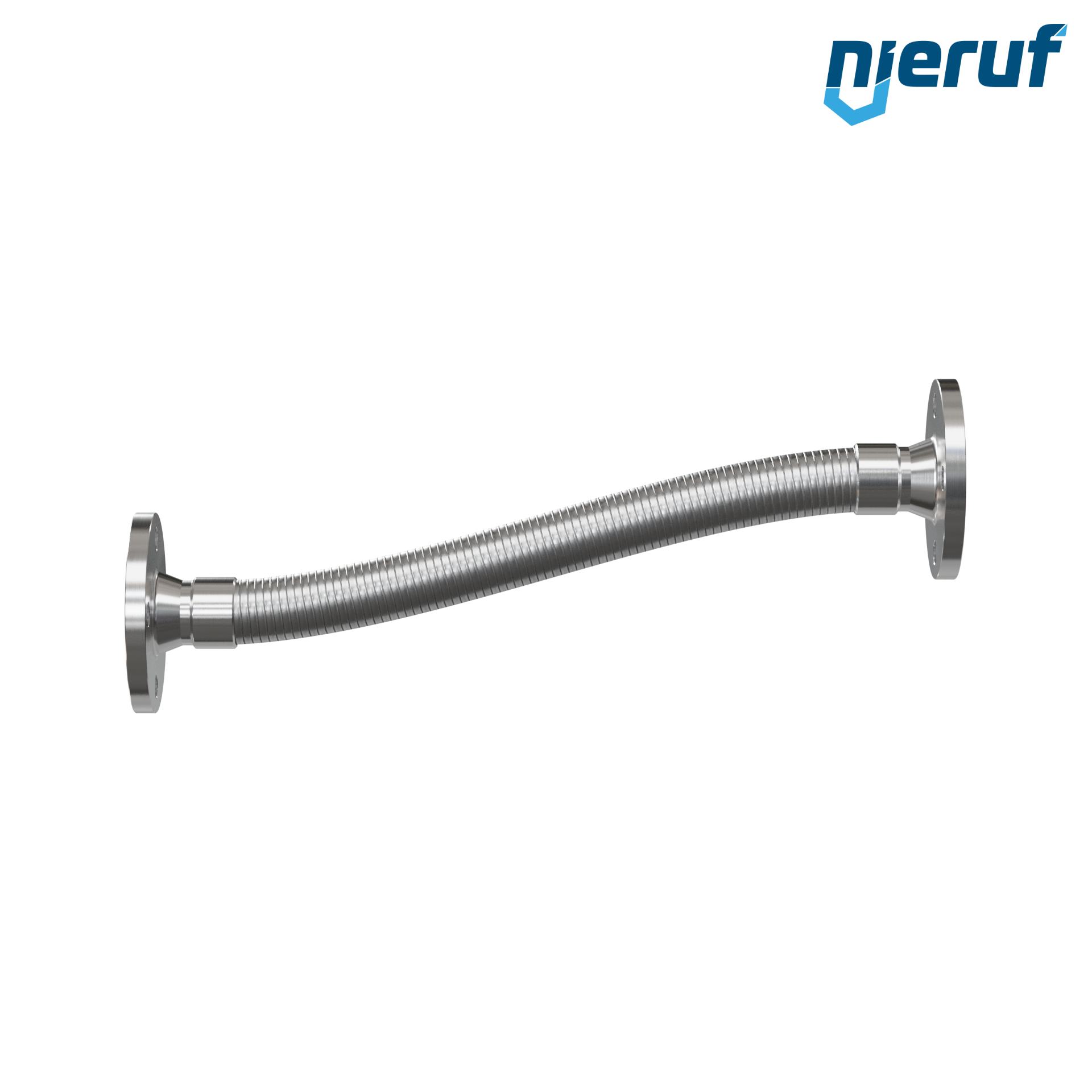Tuyaux flexible ondulé en acier inoxydable avec bride fixe des deux côtés EN 1092-01 type 11 PN 40 et double tressage en Diamètre DN40 - 1 1/2" pouce avec 1000 mm Longueur et 40 bar max. Pression