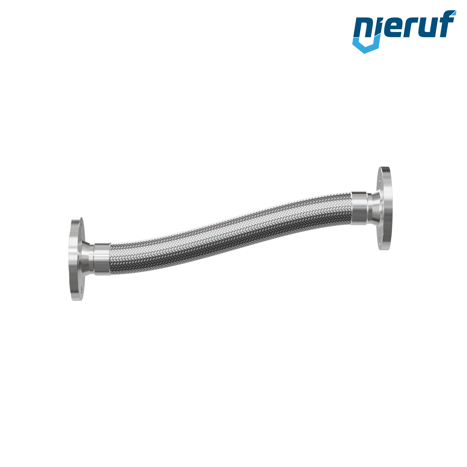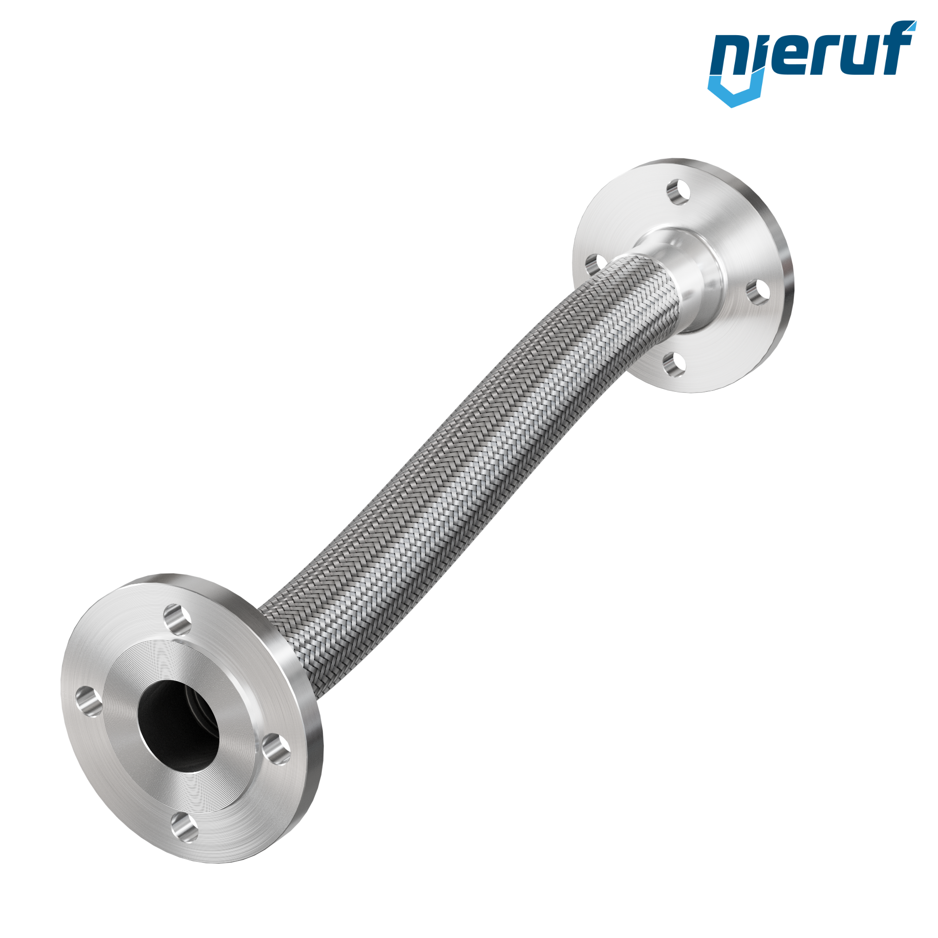 Tuyaux flexible ondulé en acier inoxydable avec bride fixe des deux côtés EN 1092-01 type 11 PN 16 et tressage simple en Diamètre DN50 - 2" pouce avec 1000 mm Longueur et 16 bar max. Pression