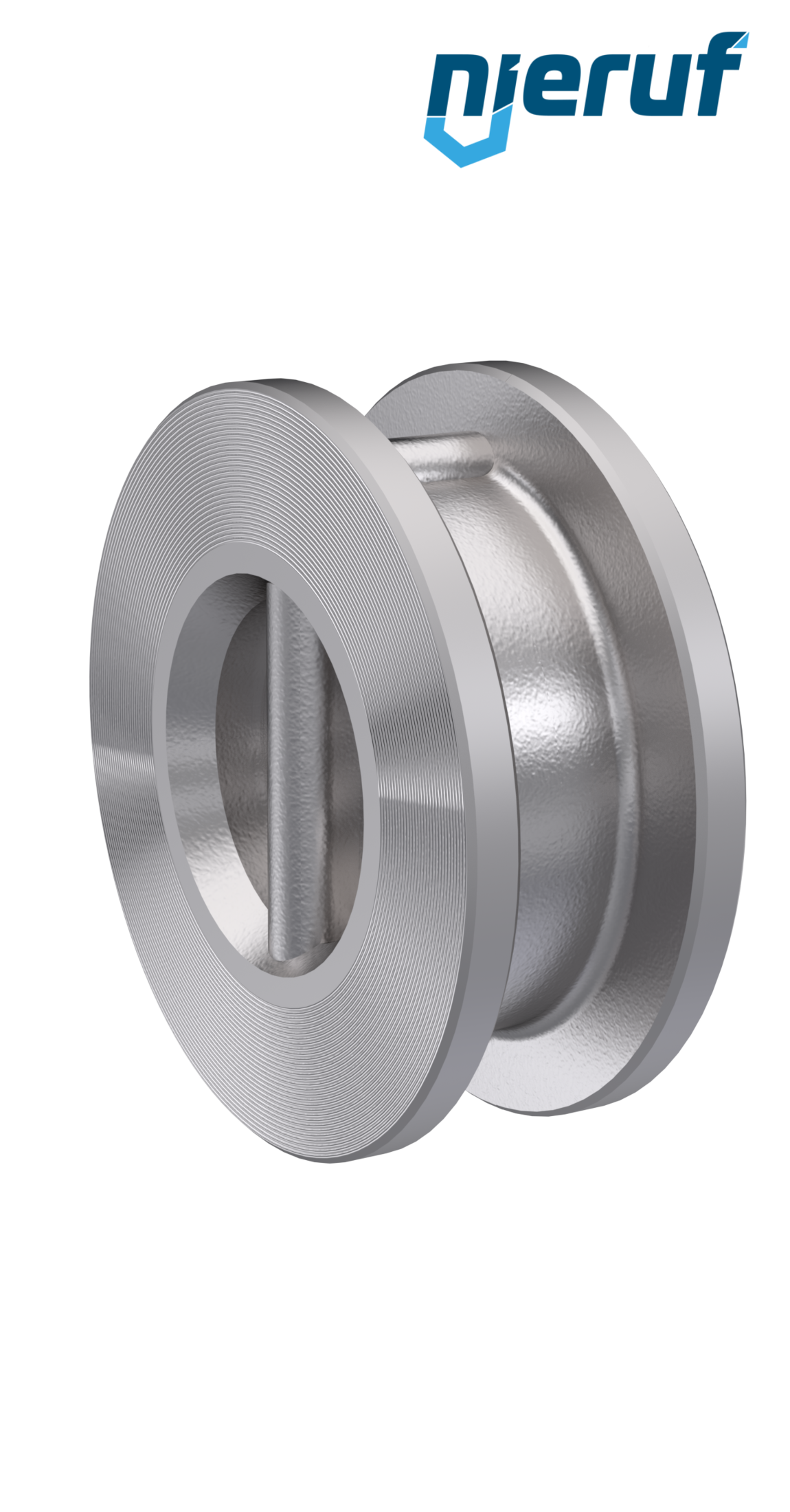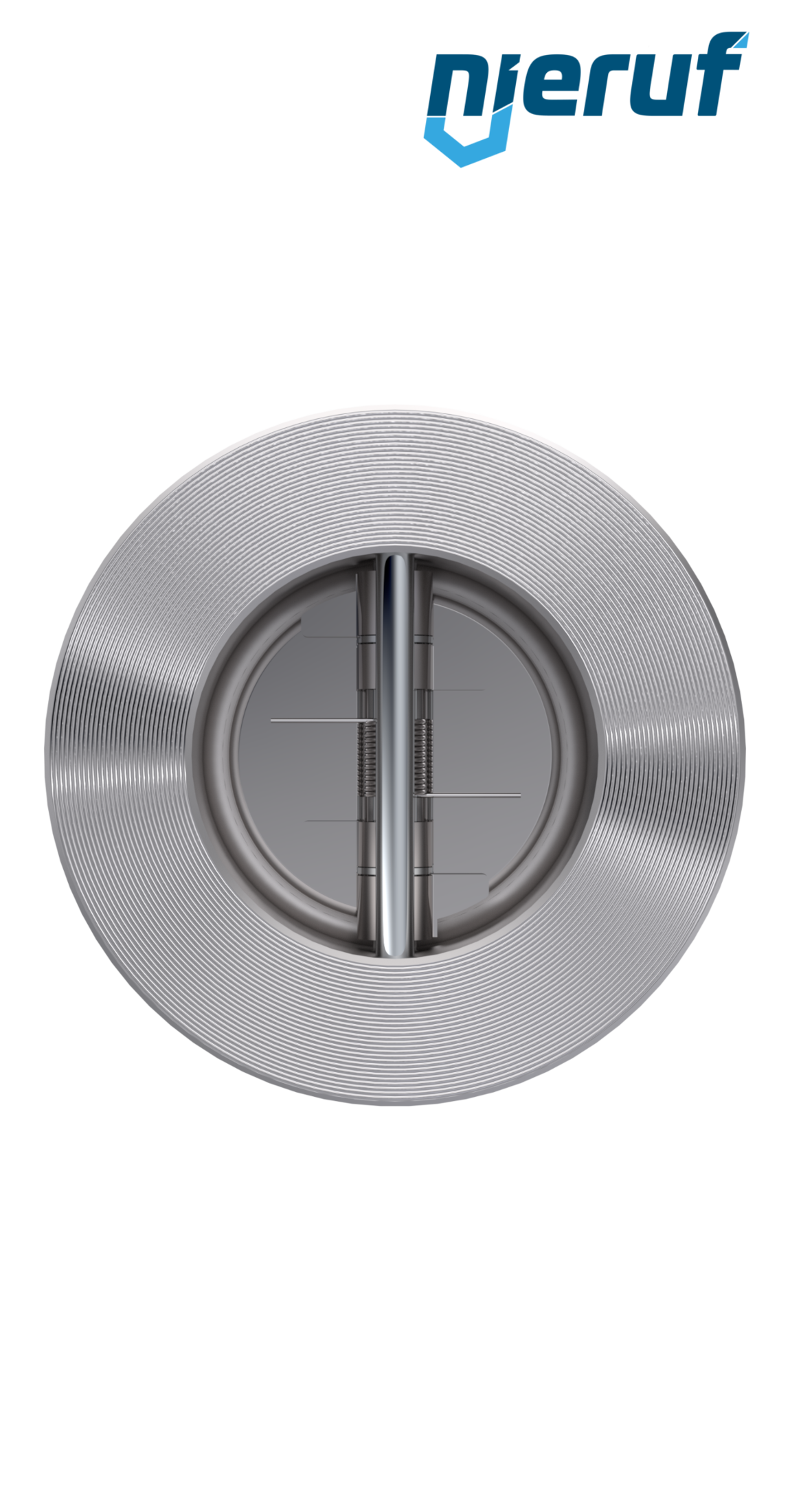 clapet anti-retour à double battant DN100 joint métal PN 10/16 DIN EN 1092-1 Forme B, corps en acier inoxydable 1.4408, battant en acier inoxydable 1.4408