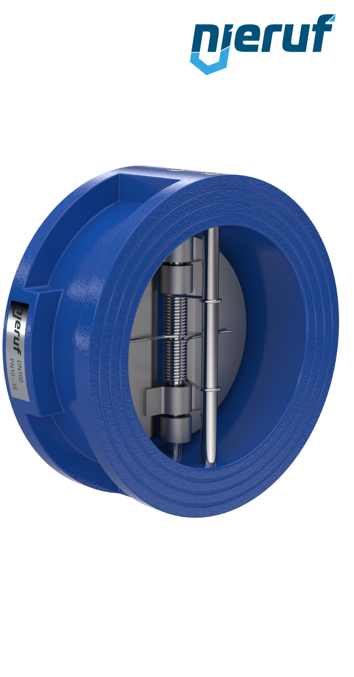 clapet anti-retour à double battant DN100 joint NBR ASME B16.5 / ANSI 150, corps en GGG40 avec revêtement époxy bleu de 180µm , battant en GGG40 nickelé