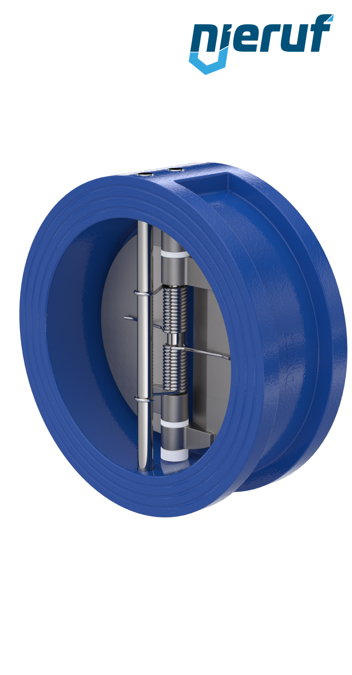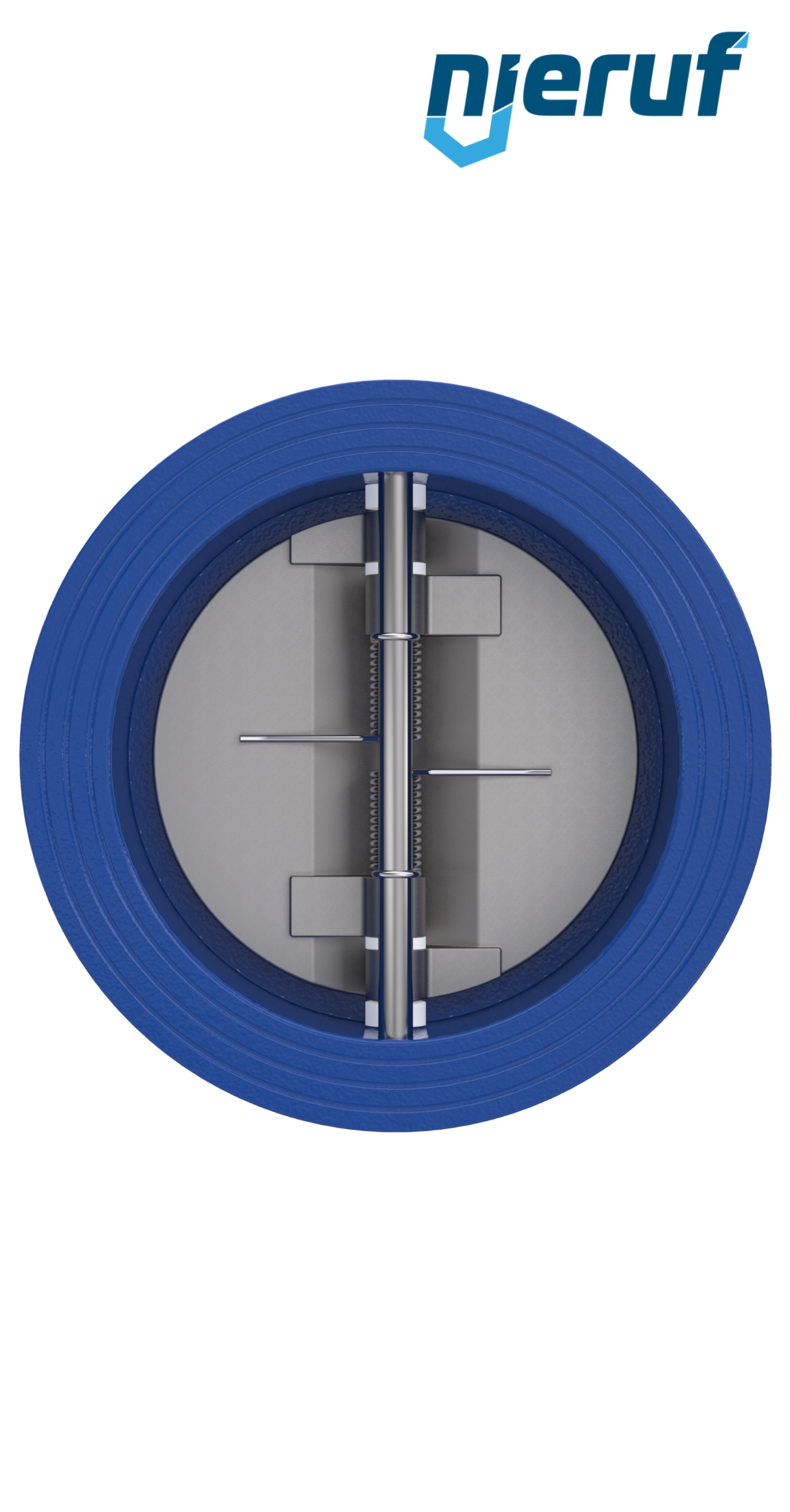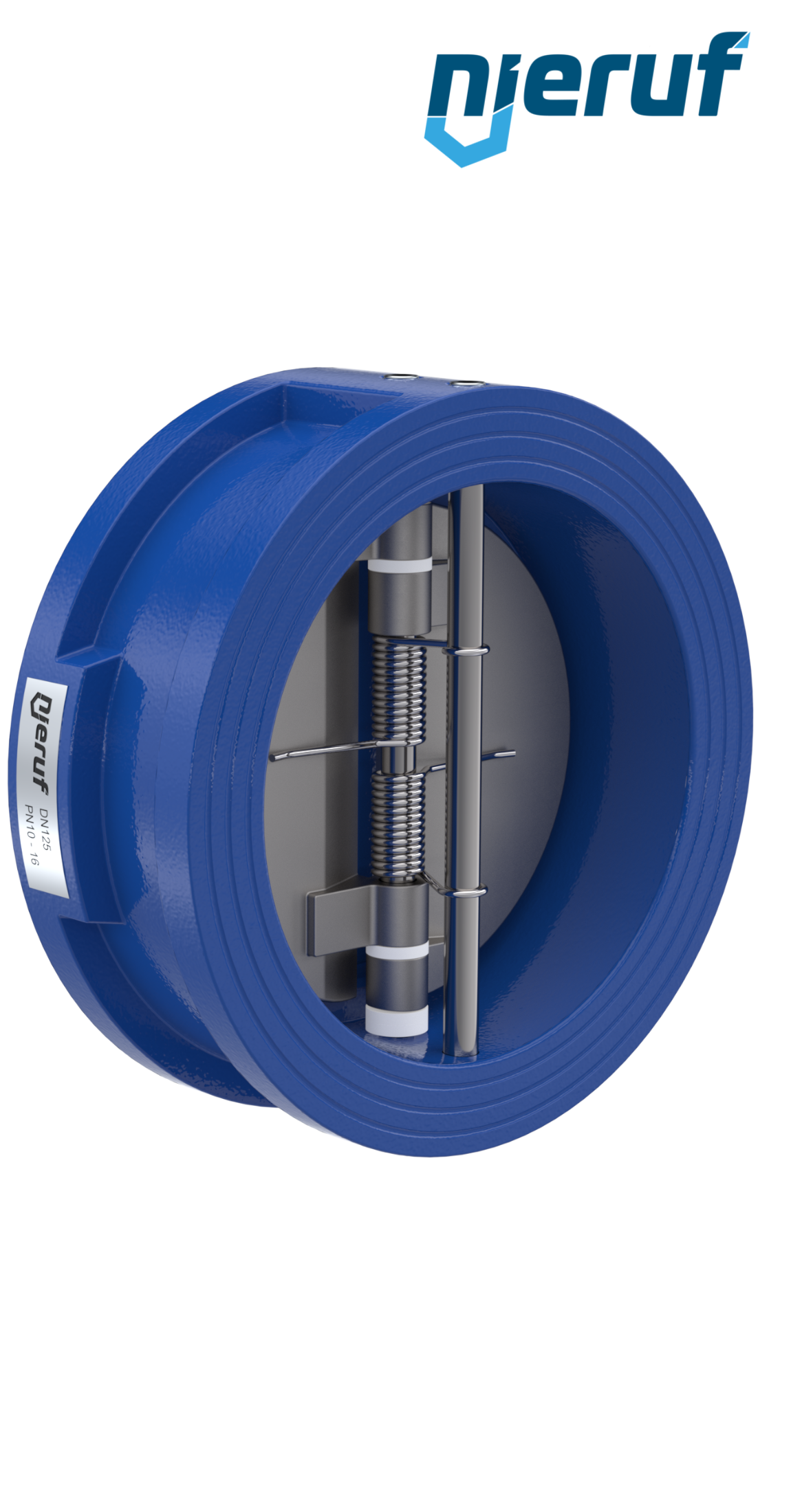 clapet anti-retour à double battant DN125 joint FKM (Viton) PN 10/16 DIN EN 1092-1 Forme B, corps en GGG40 avec revêtement époxy bleu de 180µm