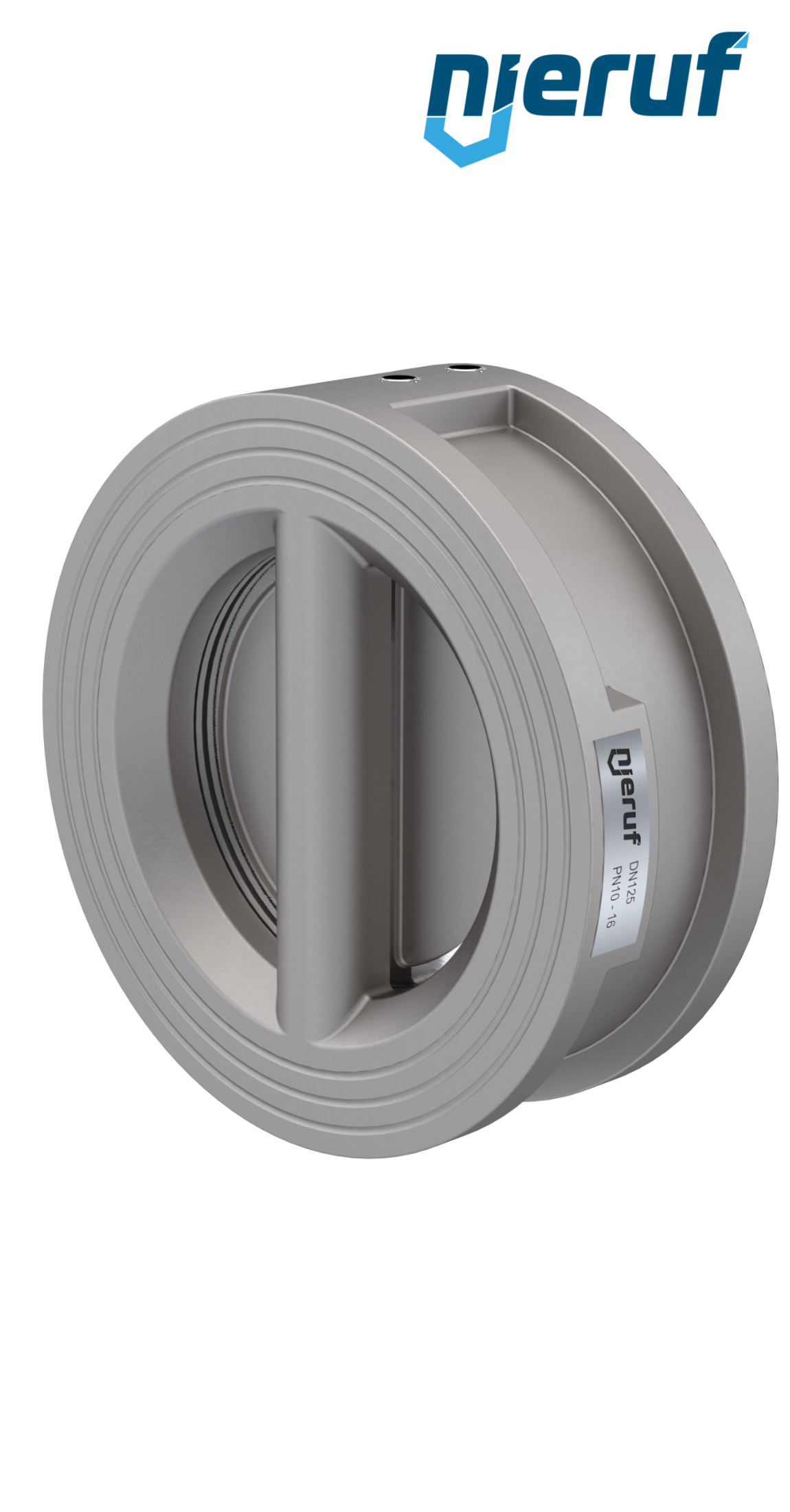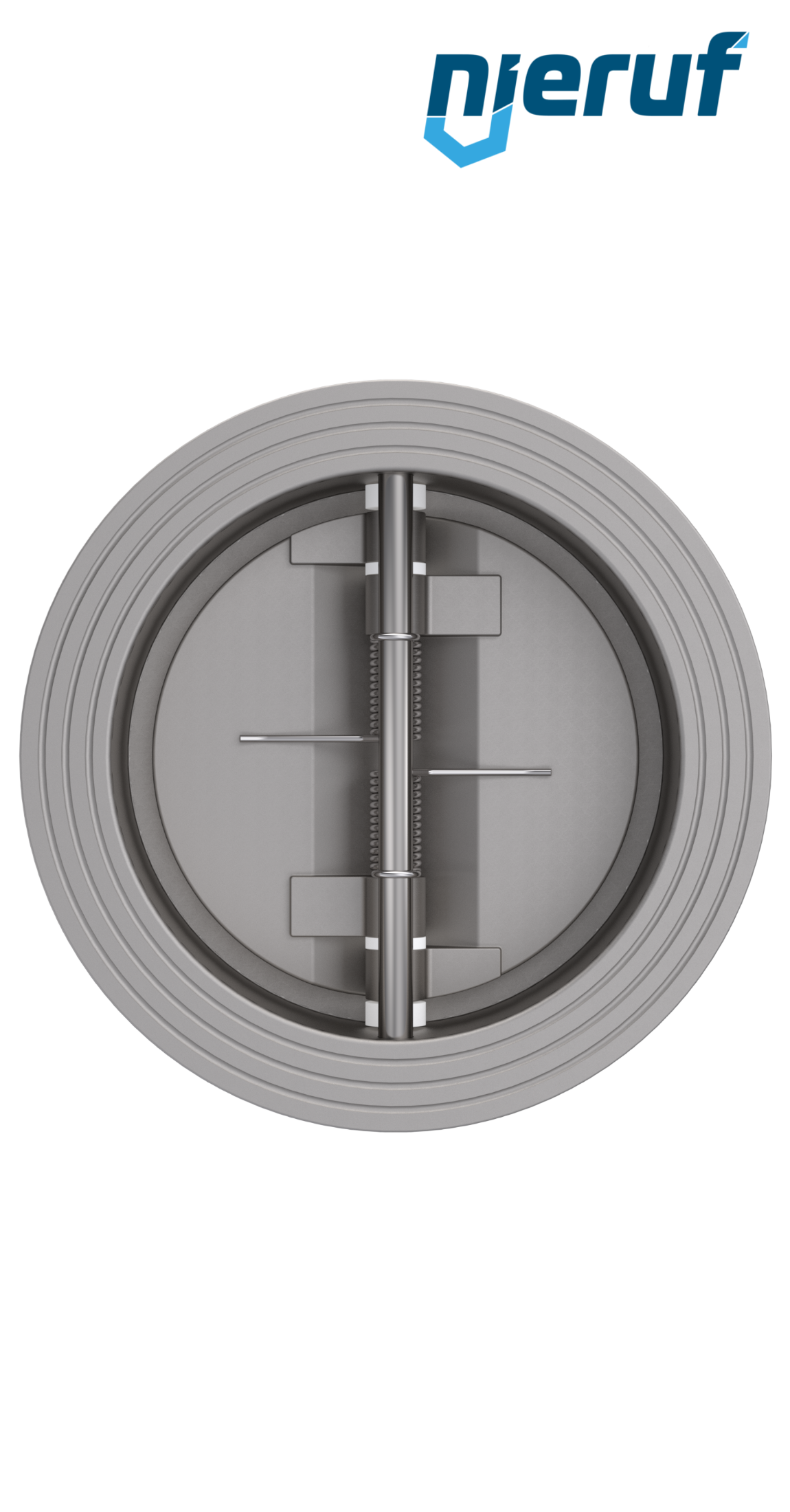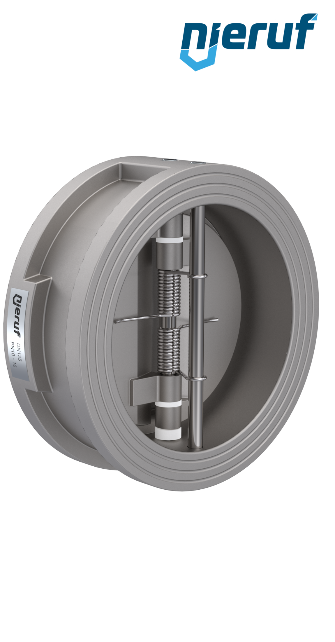 clapet anti-retour à double battant DN125 joint FKM (Viton) PN 10/16 DIN EN 1092-1 Forme B, corps en acier inoxydable 1.4408, battant en acier inoxydable 1.4408