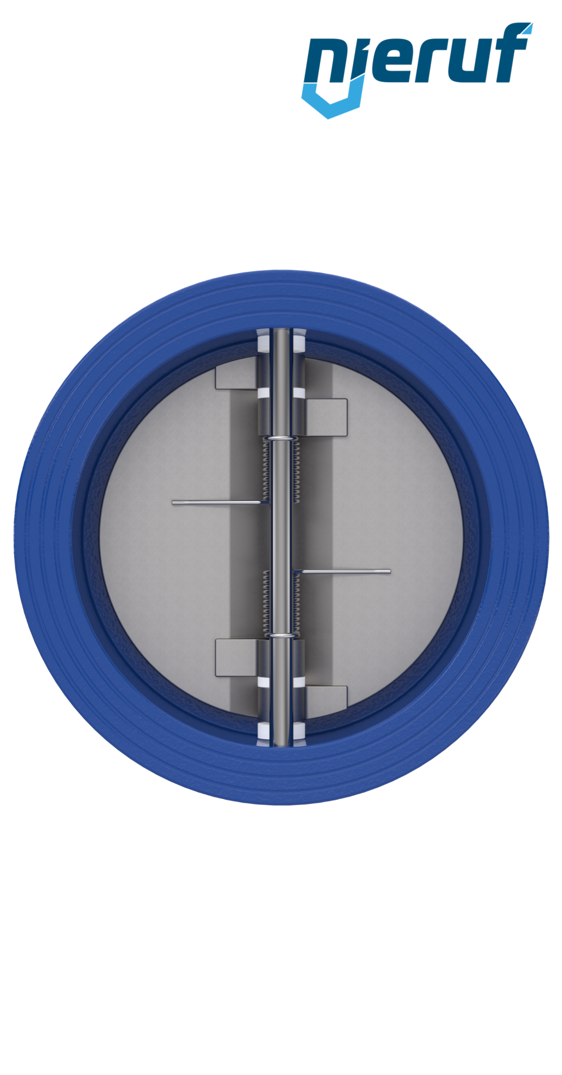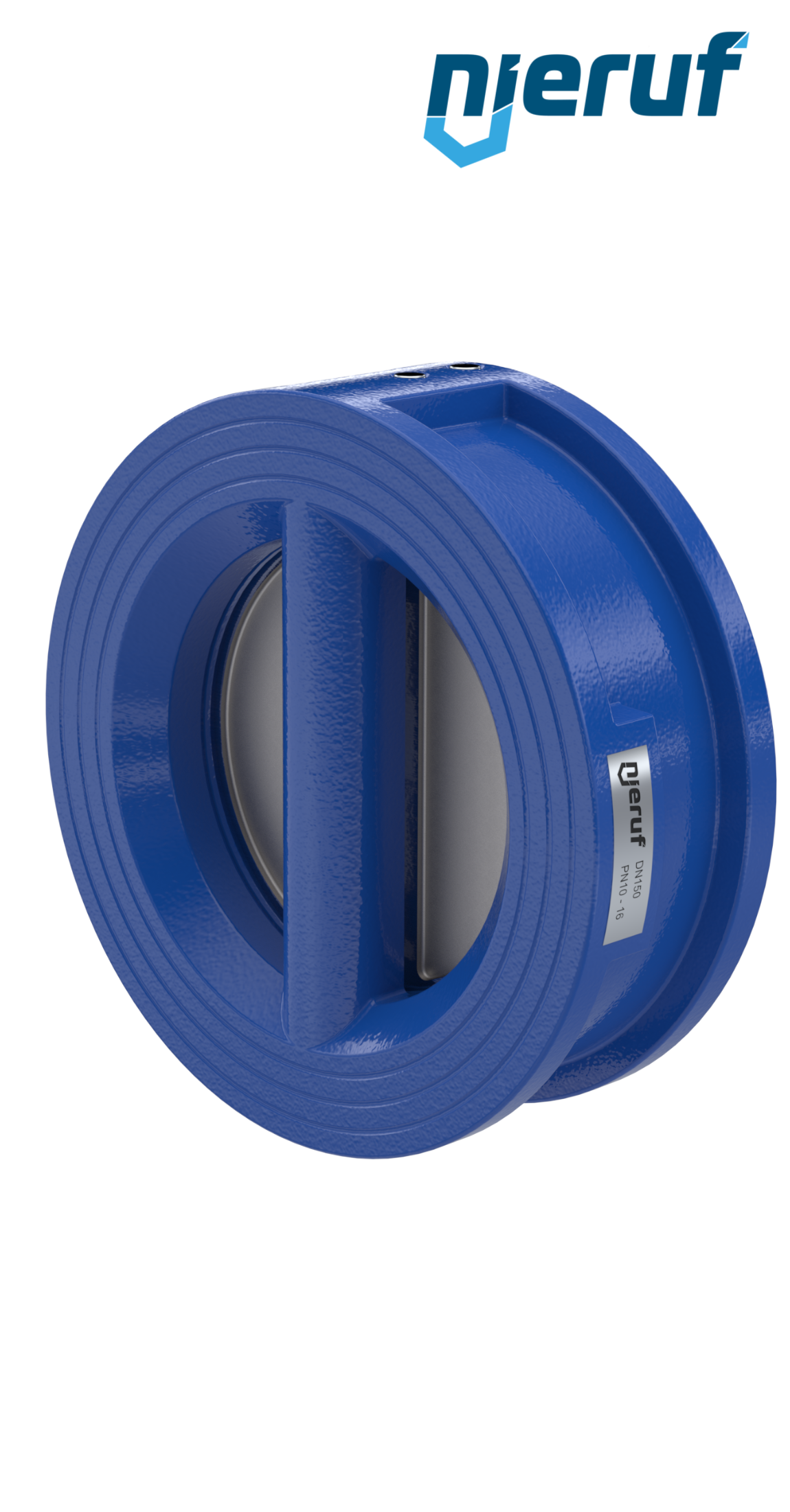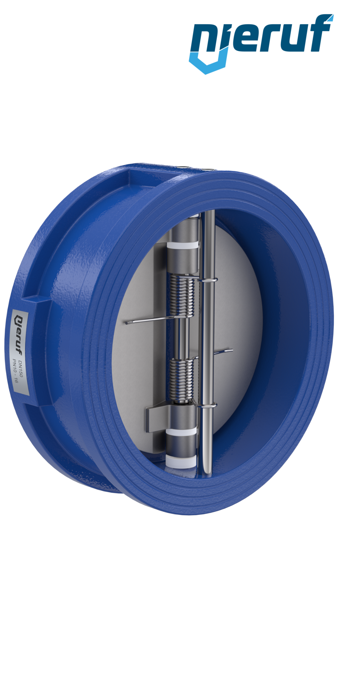 clapet anti-retour à double battant DN150 joint FKM (Viton) PN 10/16 DIN EN 1092-1 Forme B, corps en GGG40 avec revêtement époxy bleu de 180µm