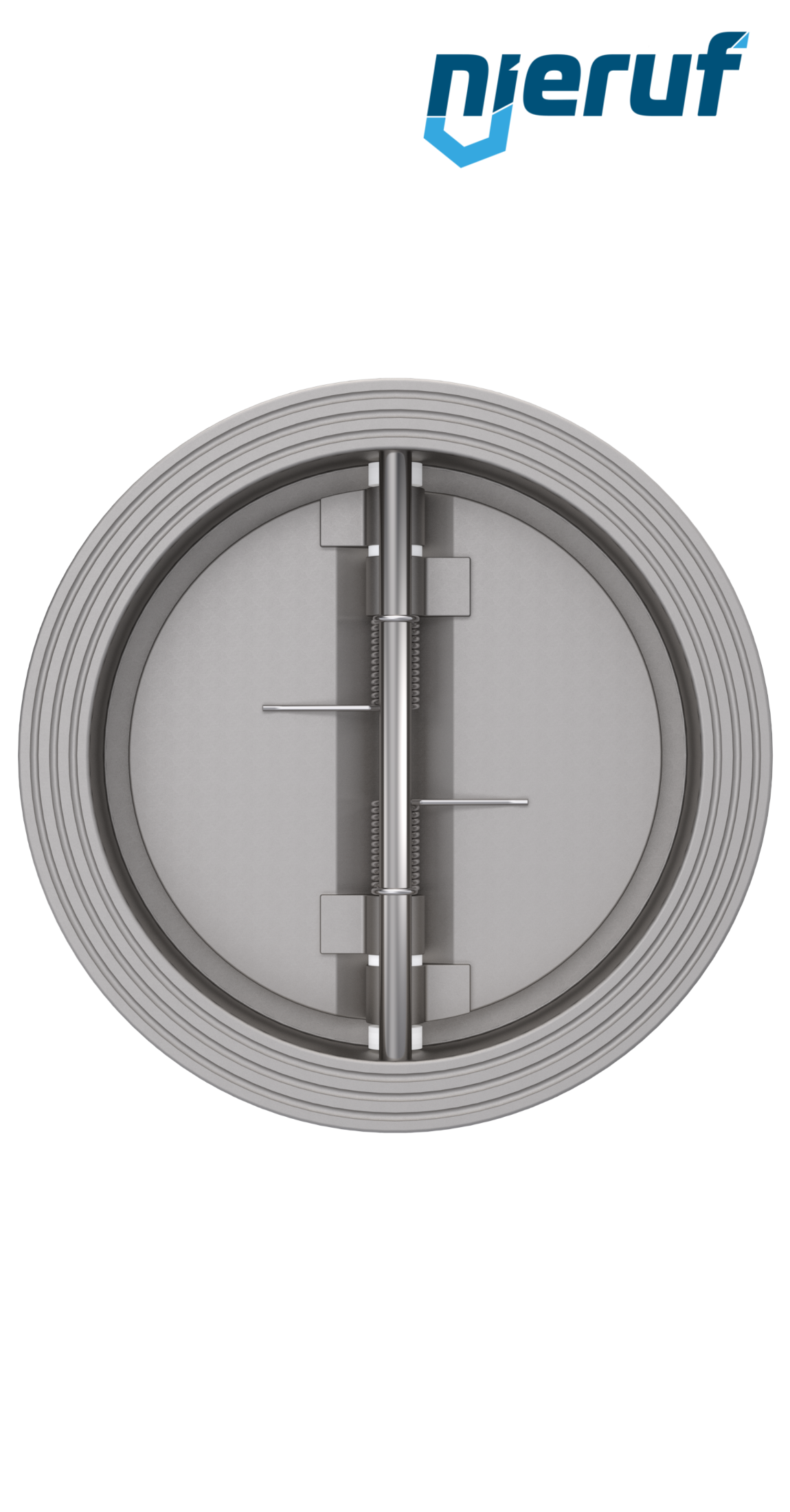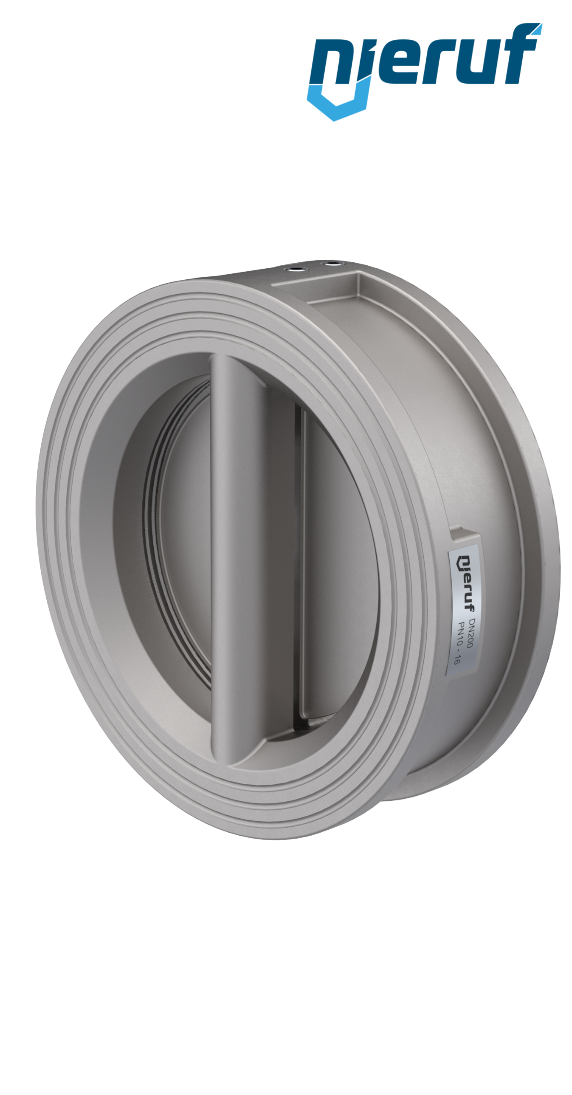 clapet anti-retour à double battant DN200 joint EPDM PN 10/16 DIN EN 1092-1 Forme B, corps en acier inoxydable 1.4408, battant en acier inoxydable 1.4408
