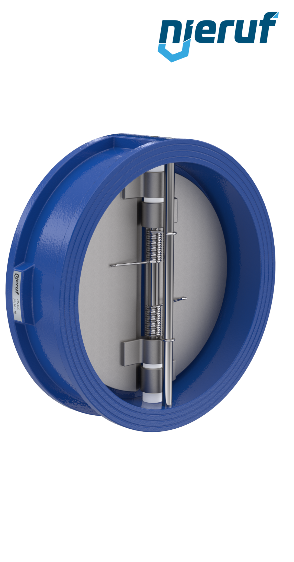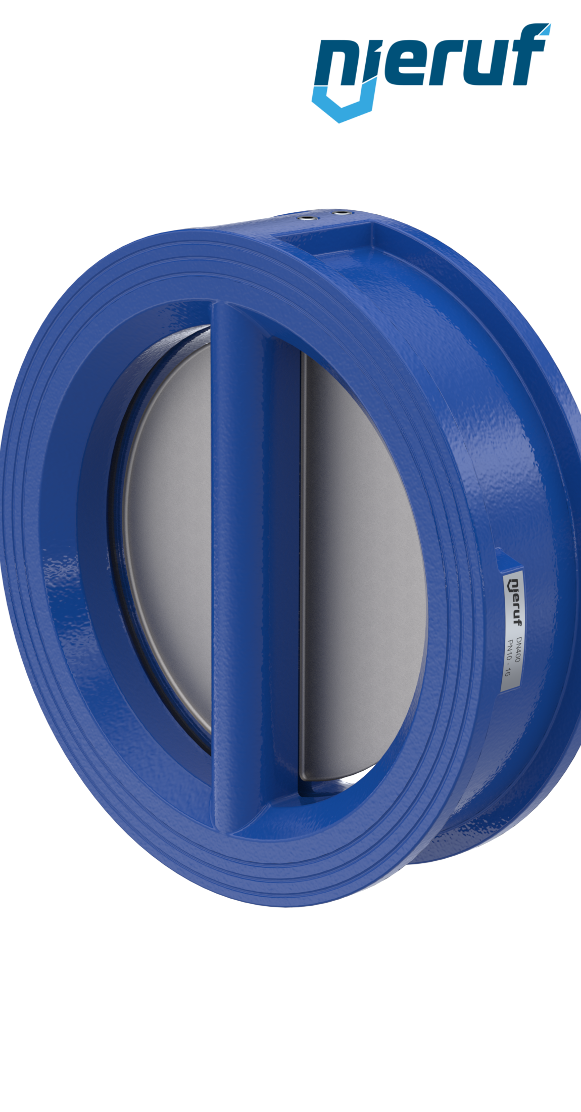 clapet anti-retour à double battant DN400 joint FKM (Viton) PN 10 DIN EN 1092-1 Forme B, corps en GGG40 avec revêtement époxy bleu de 180µm