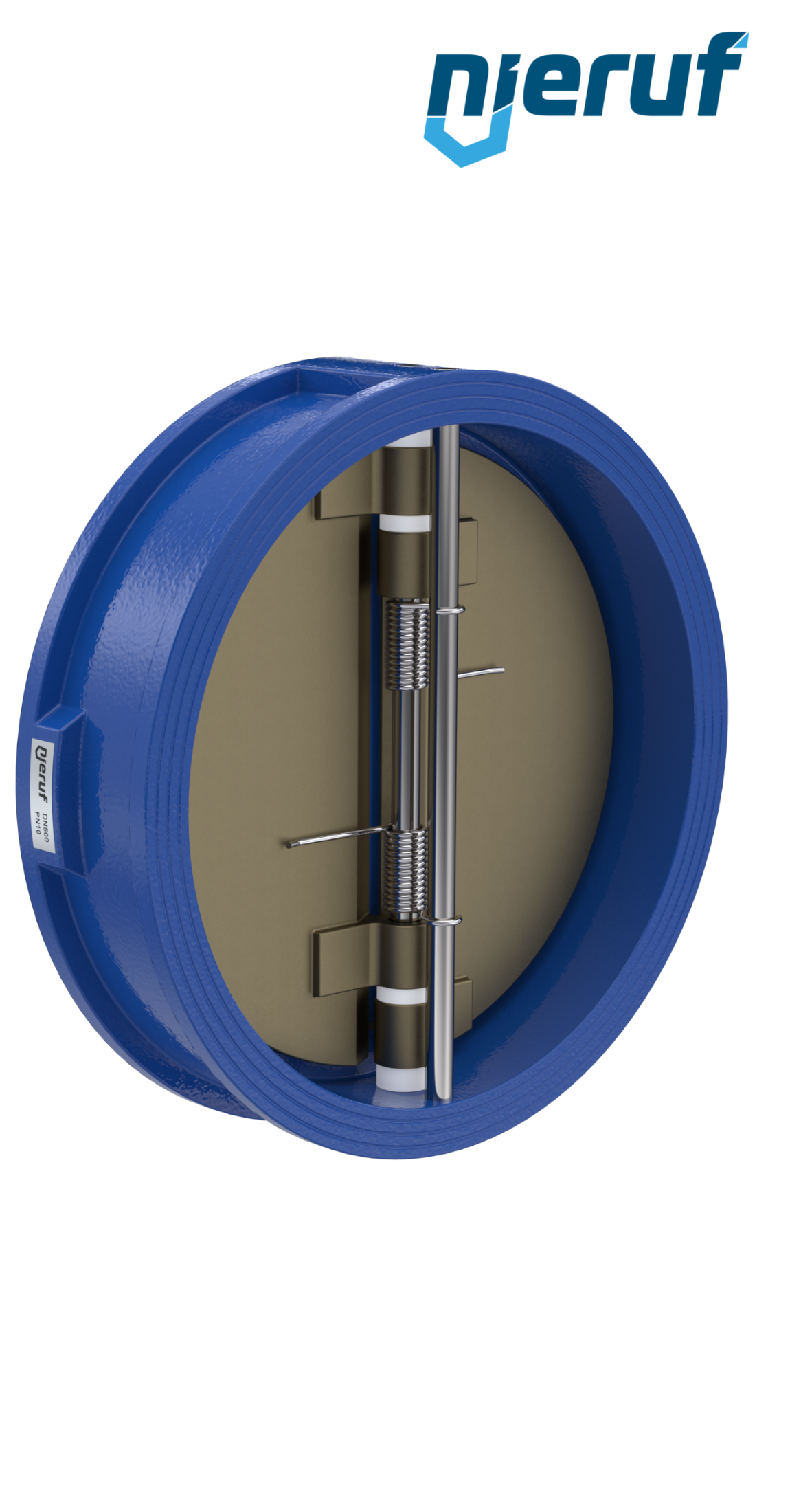 clapet anti-retour à double battant DN500 joint NBR ASME B16.5 / ANSI 150, corps en GGG40 avec revêtement époxy bleu de 180µm , battant en aluminium-bronze