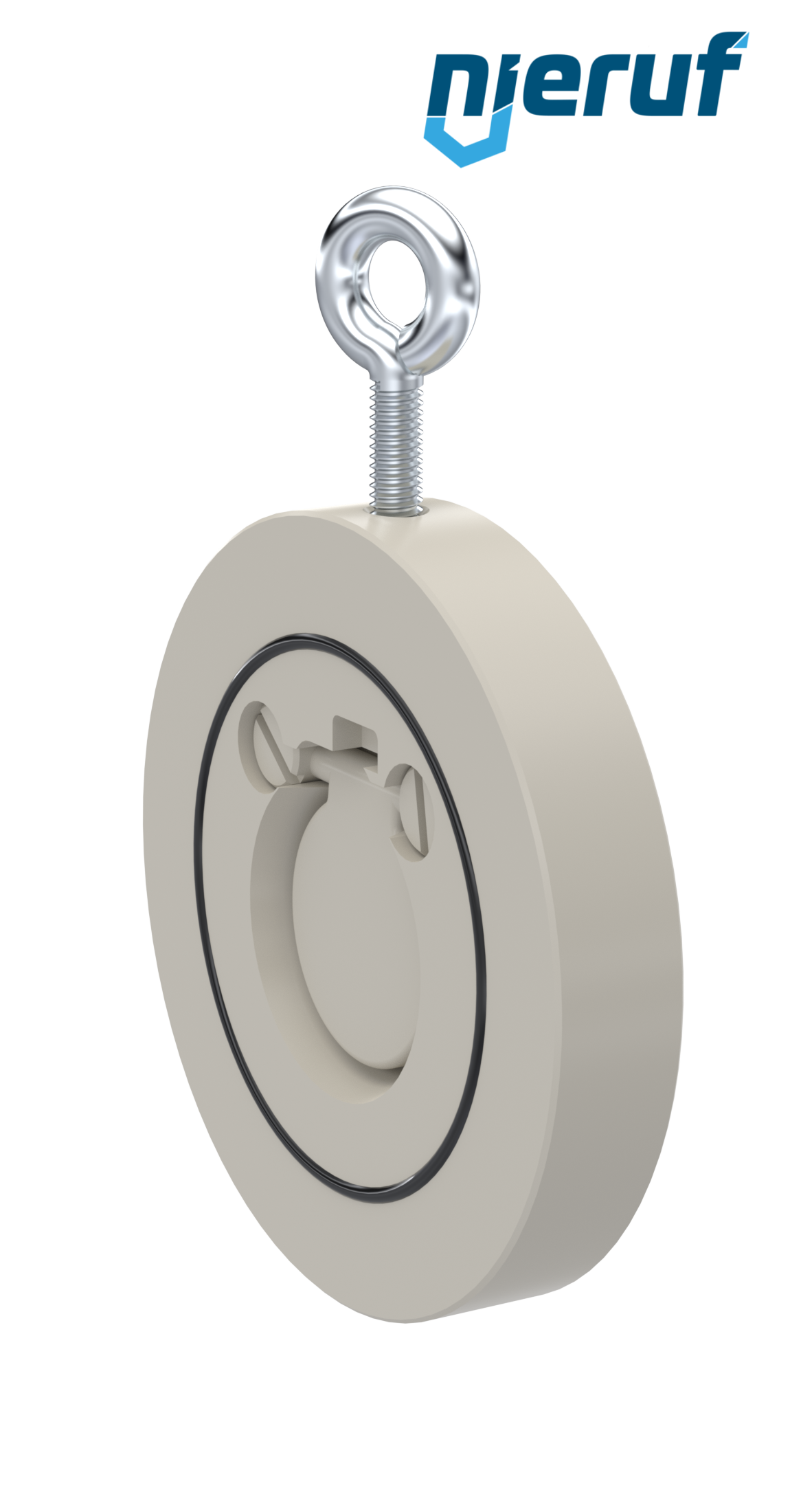 clapet anti-retour entre brides type wafer DN32 PN 10/16 DIN EN 1092-1 Forme B en plastique PP-H joint FKM (Viton) pour fluides liquides et gazeux