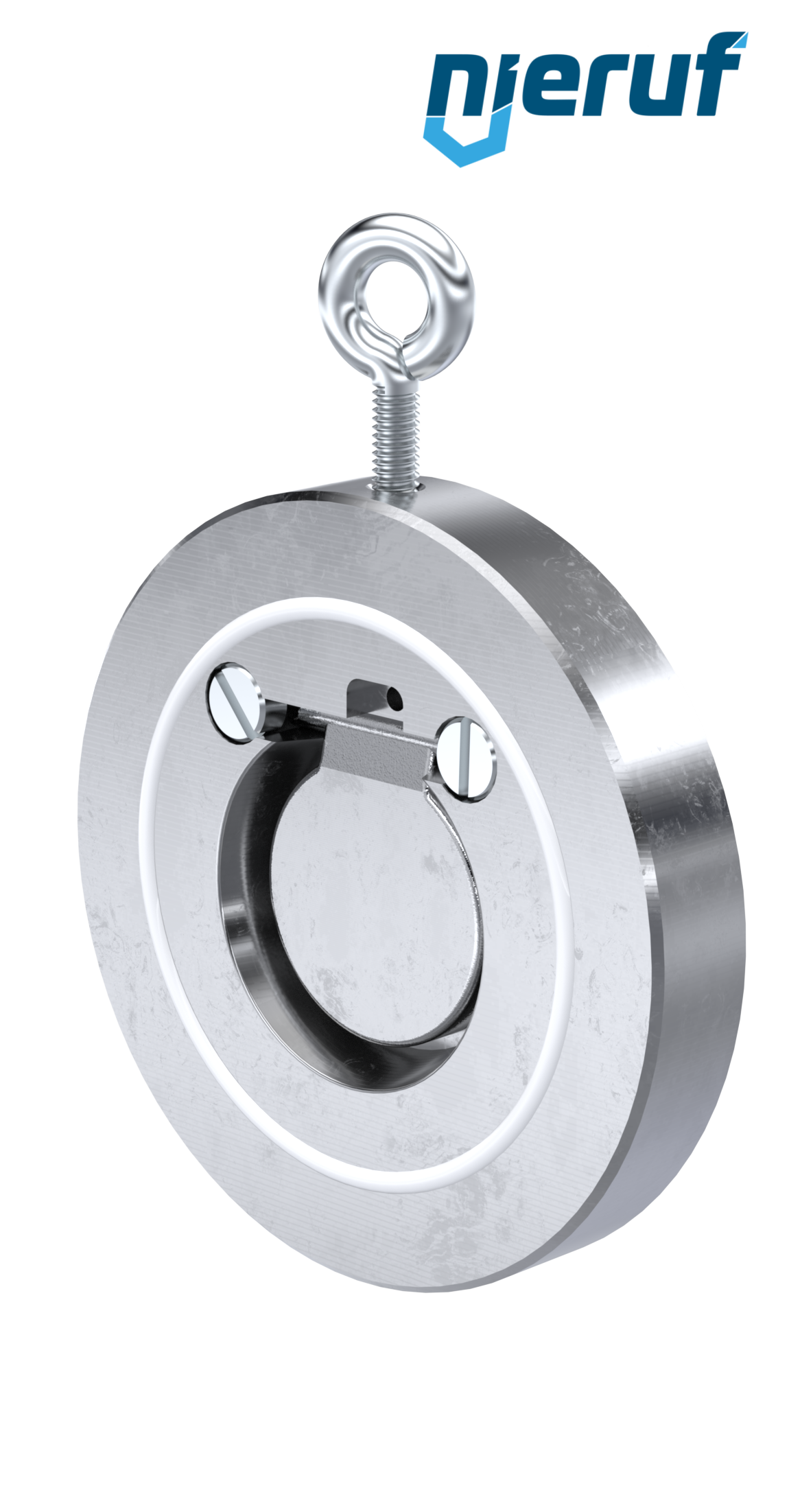 clapet anti-retour entre brides type wafer DN40 PN 10/16/25/40 DIN EN 1092-1 Forme B en acier 1.0460 (galvanisé) joint PTFE pour fluides liquides et gazeux