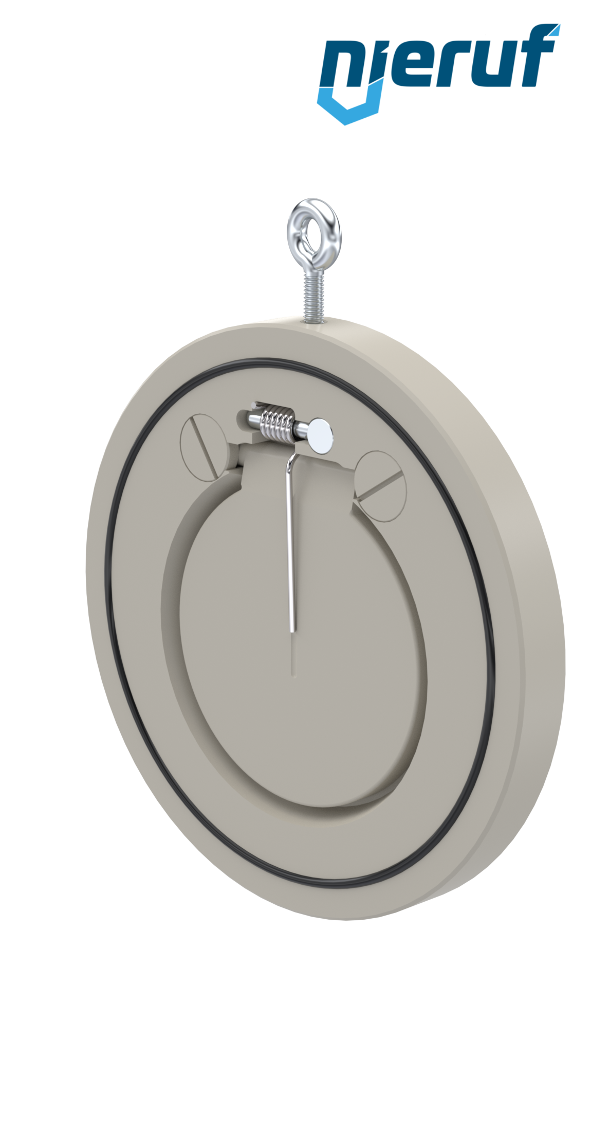 clapet anti-retour entre brides type wafer avec ressort DN125 PN 10/16 DIN EN 1092-1 Forme B en plastique PP-H joint FKM (Viton)