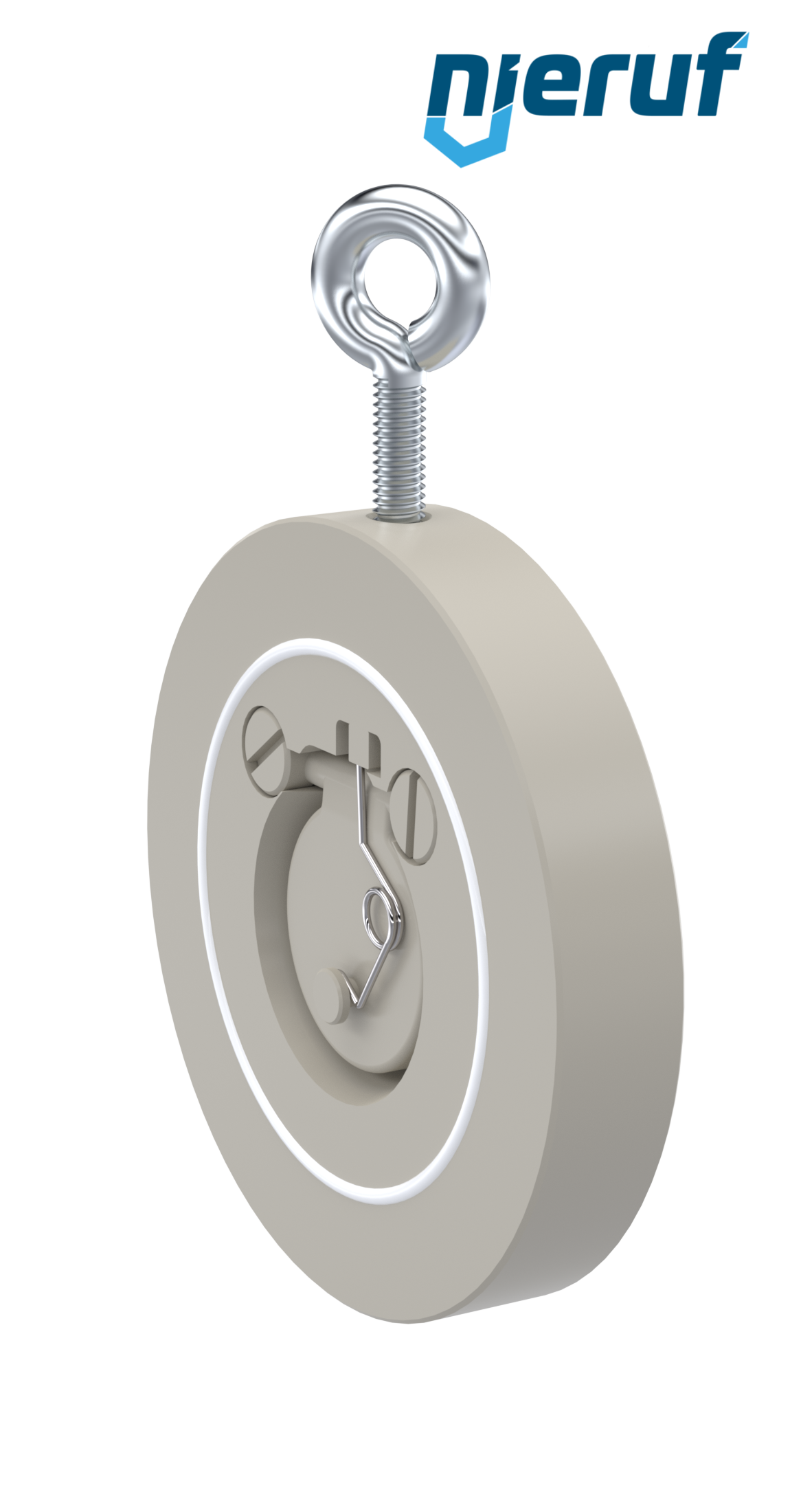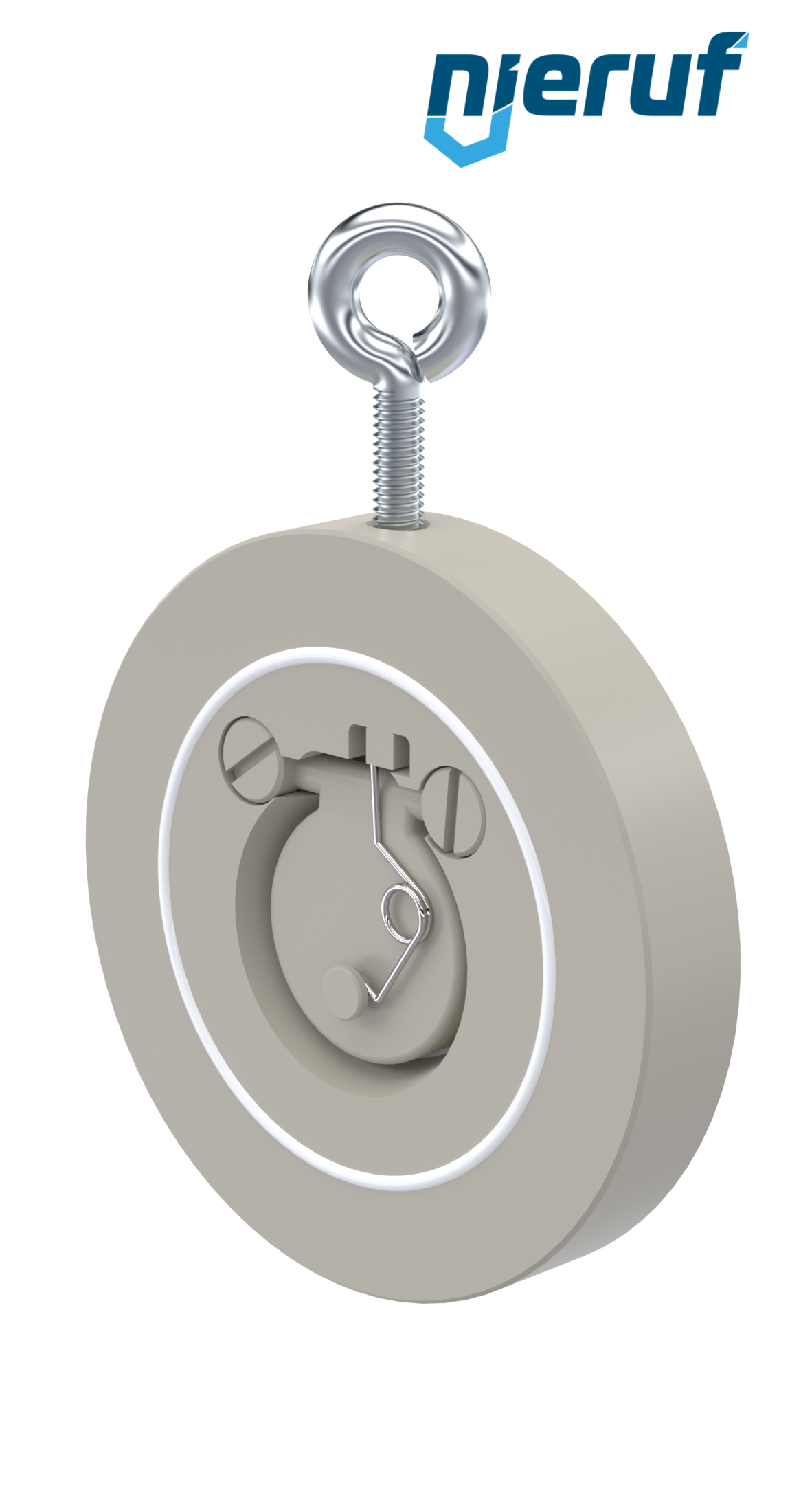 clapet anti-retour entre brides type wafer avec ressort DN32 PN 10/16 DIN EN 1092-1 Forme B en plastique PP-H joint PTFE pour fluides liquides et gazeux