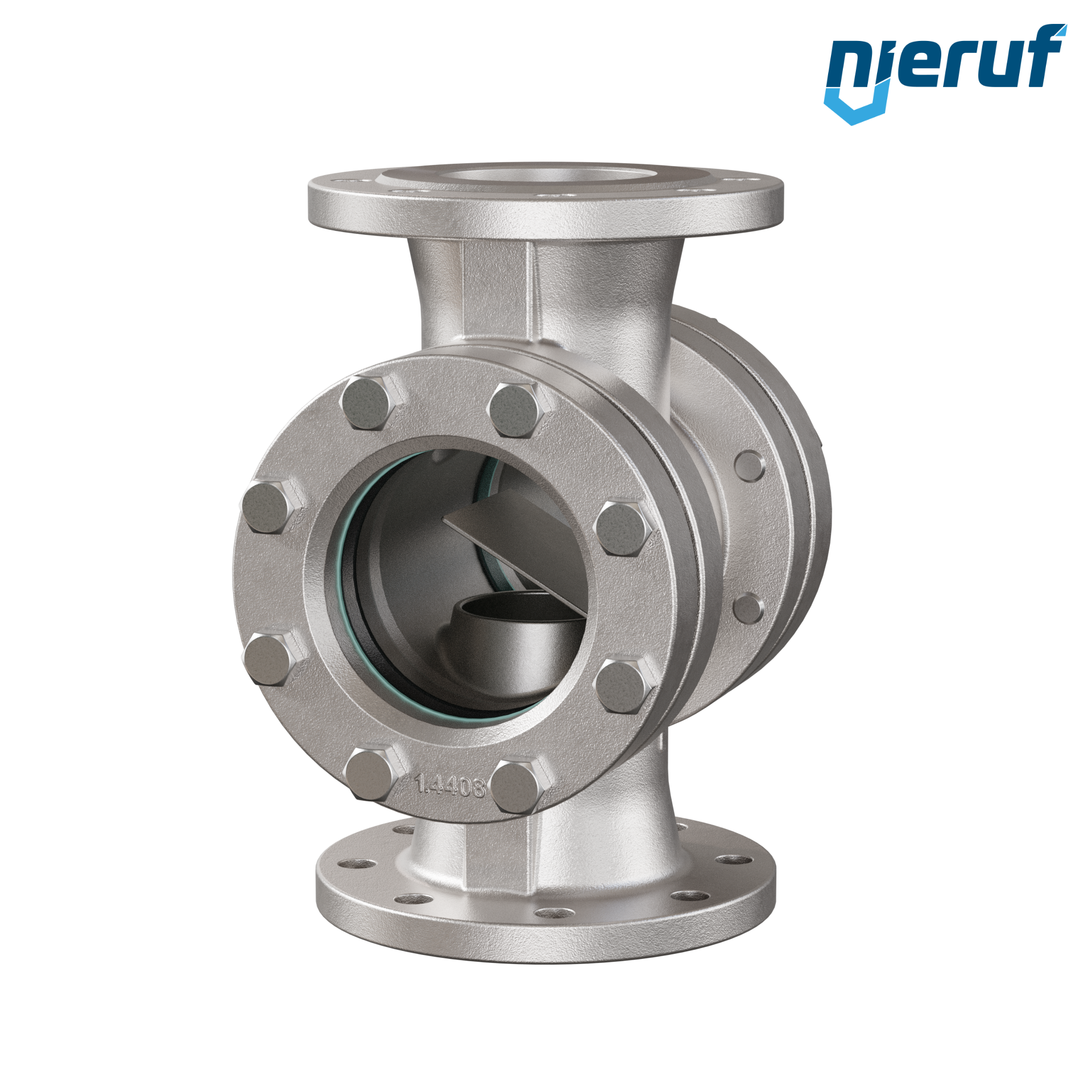 contrôleur de circulation à bride DN100 acier inoxydable avec clapet modèle FS03 verre sodocalcique maximum 16 bar version avec clapet