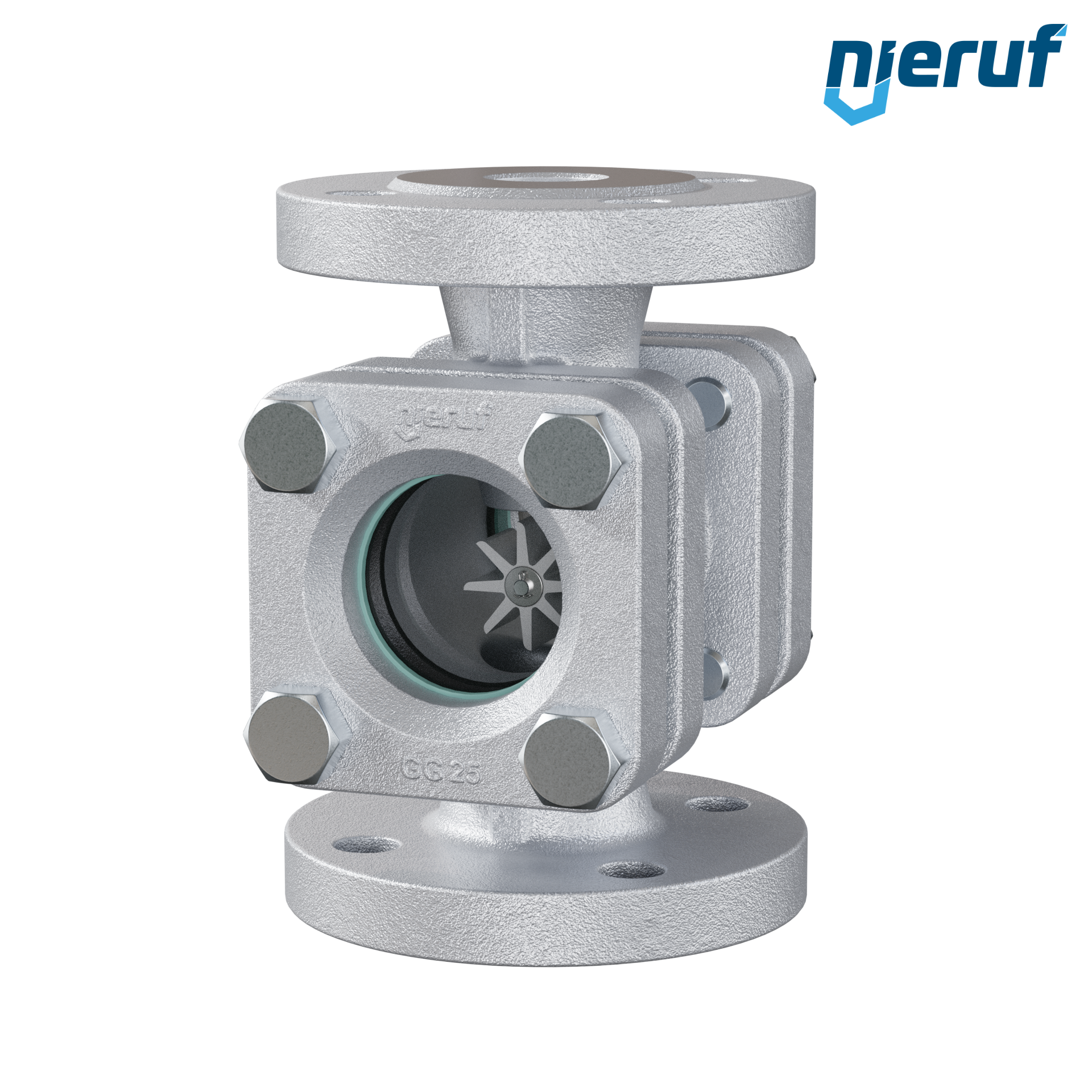 contrôleur de circulation à bride DN25 fonte grise GG25 verre borosilicate version avec rotor en PTFE