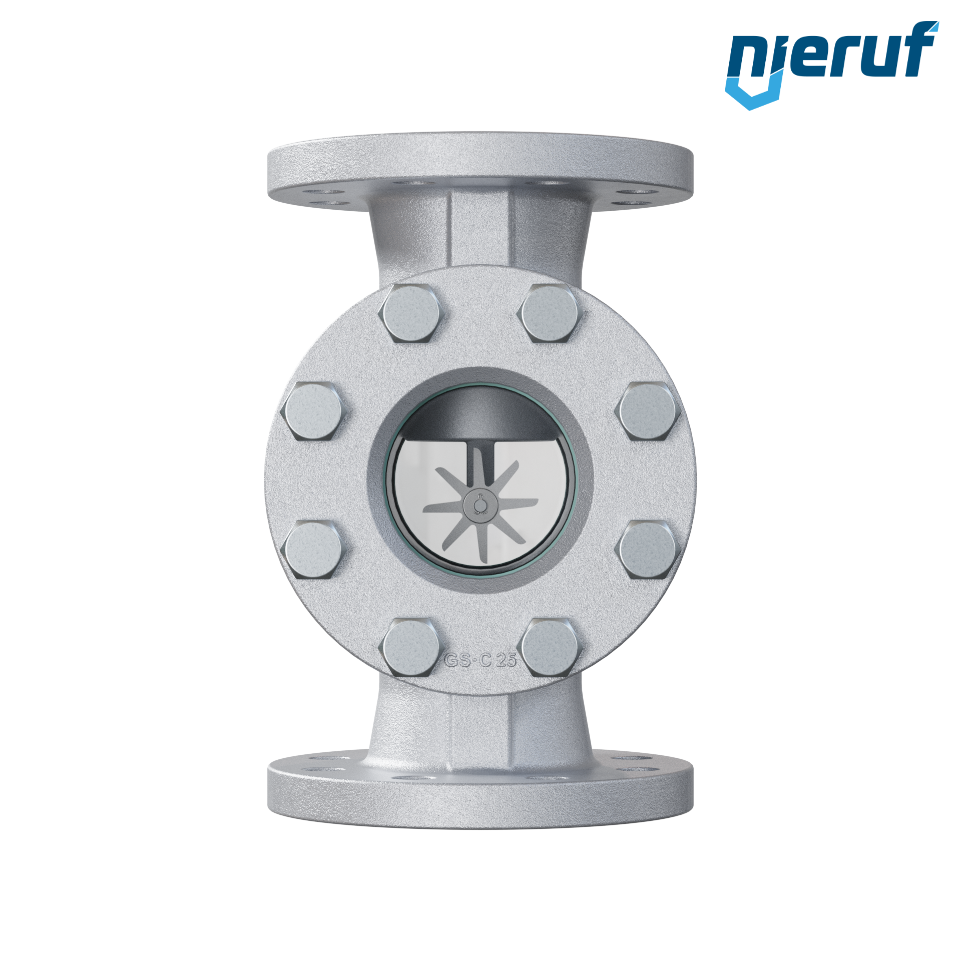 contrôleur de circulation à bride 2 1/2" acier moulé modèle FS02 verre sodocalcique maximum 16 bar version avec rotor en PTFE