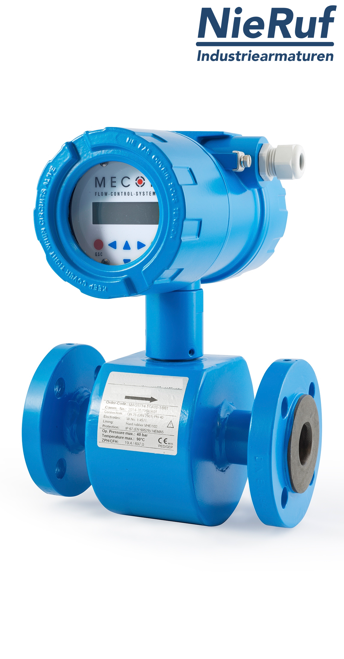 débitmètre à induction magnétique DN80 bride DIN 2501 PN16 avec affichage numérique, revêtement du tube de mesure en caoutchouc dur VHE/102 voltage AC 230V 50/60hz sortie analogique 4 - 20mA