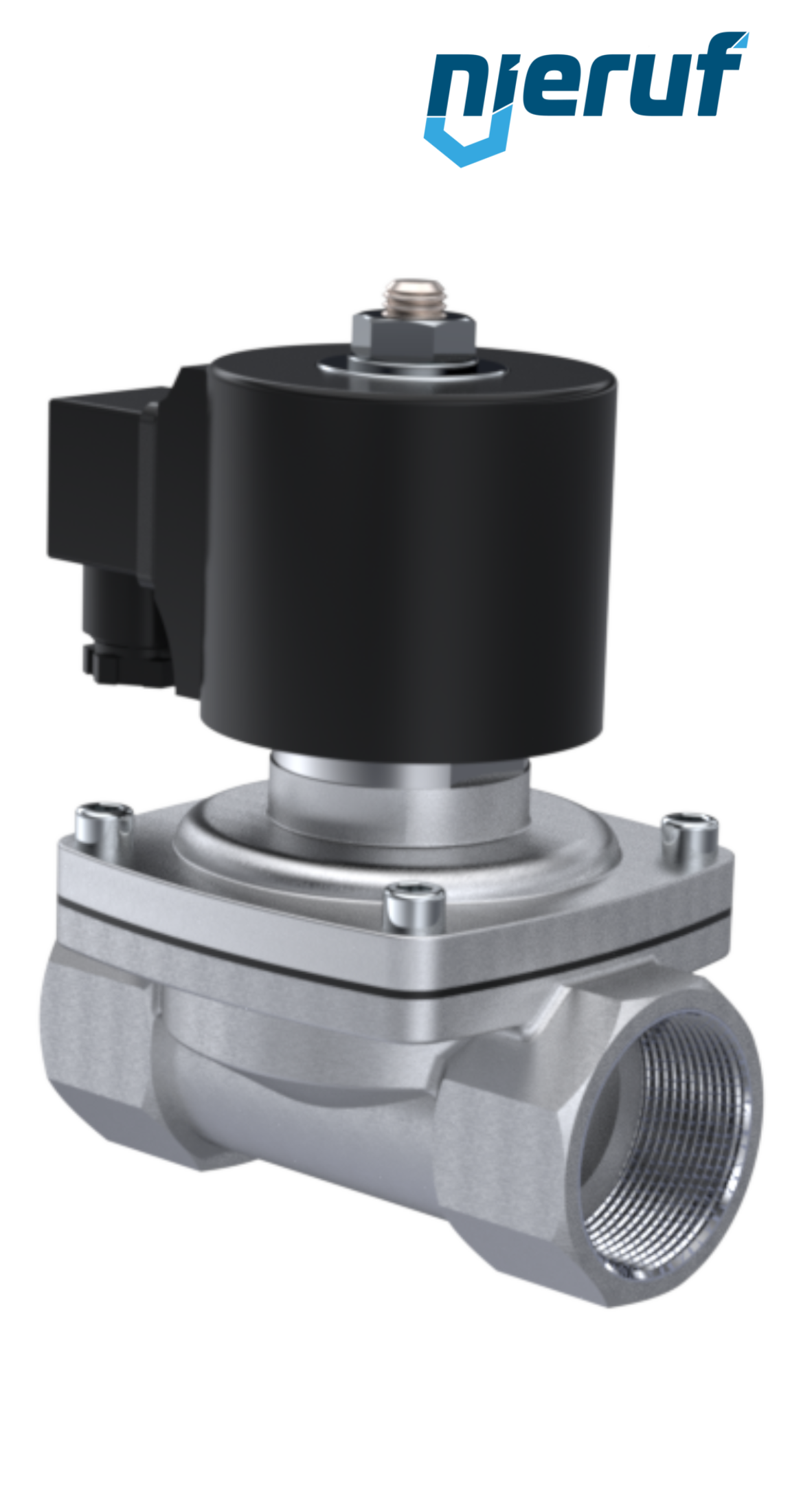 électrovanne G 1 1/2" pouce DN40 en acier inoxydable 1.4308, joint en FKM, commande forcée, tension nominale 24V DC, pression 0,0 - 6 bar