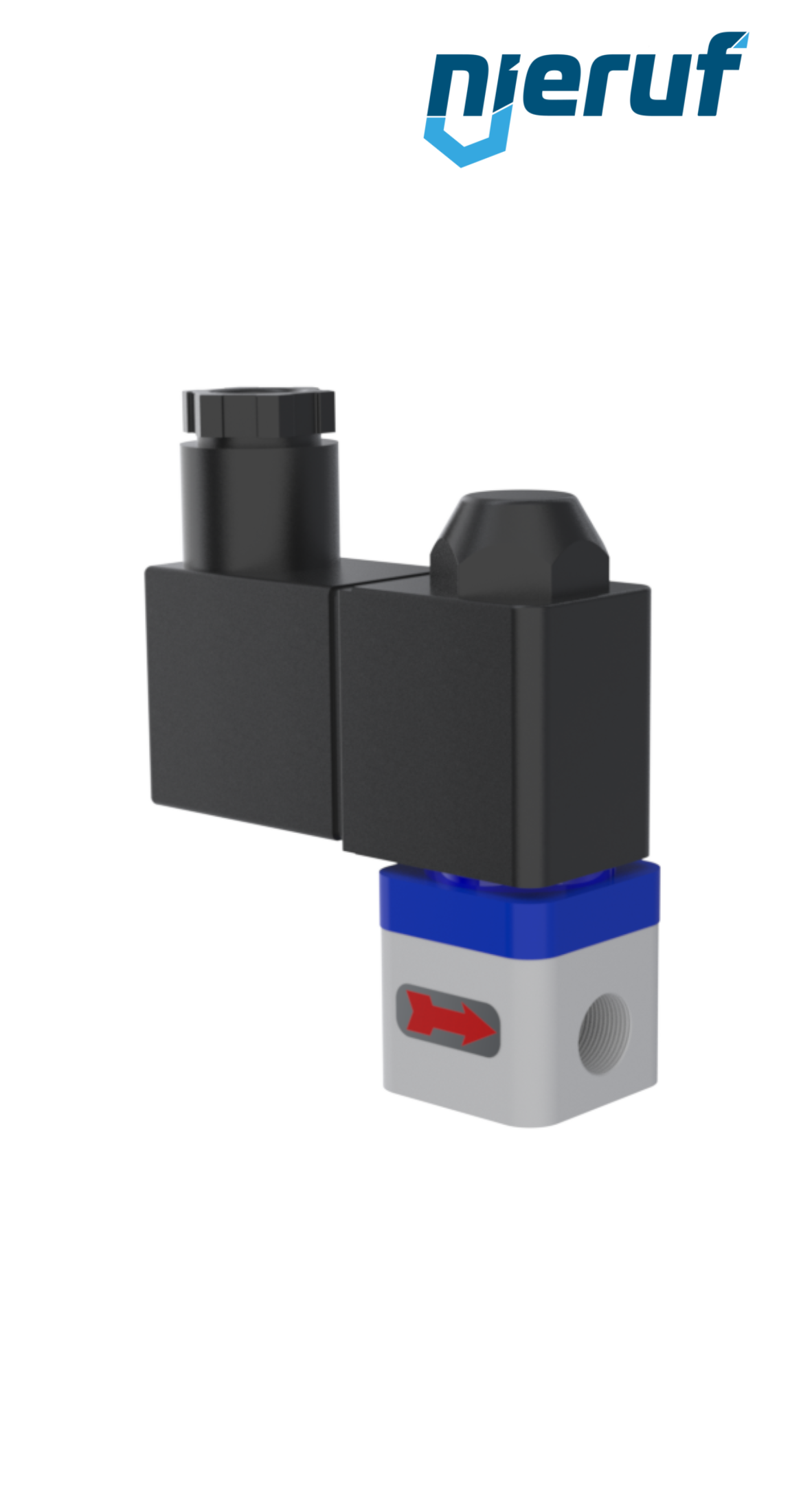 électrovanne G 1/8" pouce DN2,0 en PTFE, joint en FKM, commande directe, tension nominale 230V 50Hz, pression 0 - 2 bar