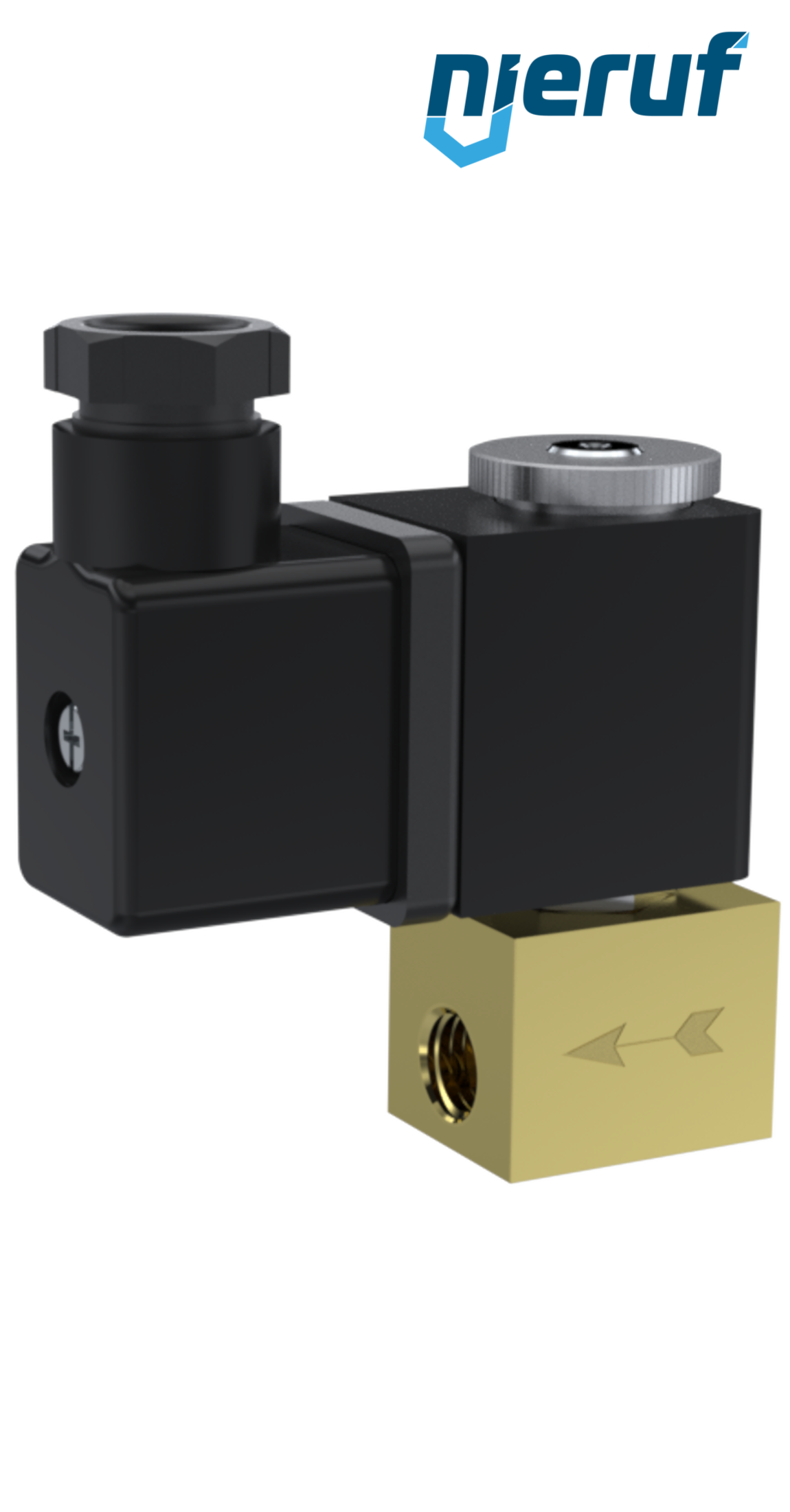 électrovanne 3/2 voies G 1/8" pouce DN2,0 en laiton, joint en FKM, commande directe, tension nominale 24V DC, pression 0-4 bar