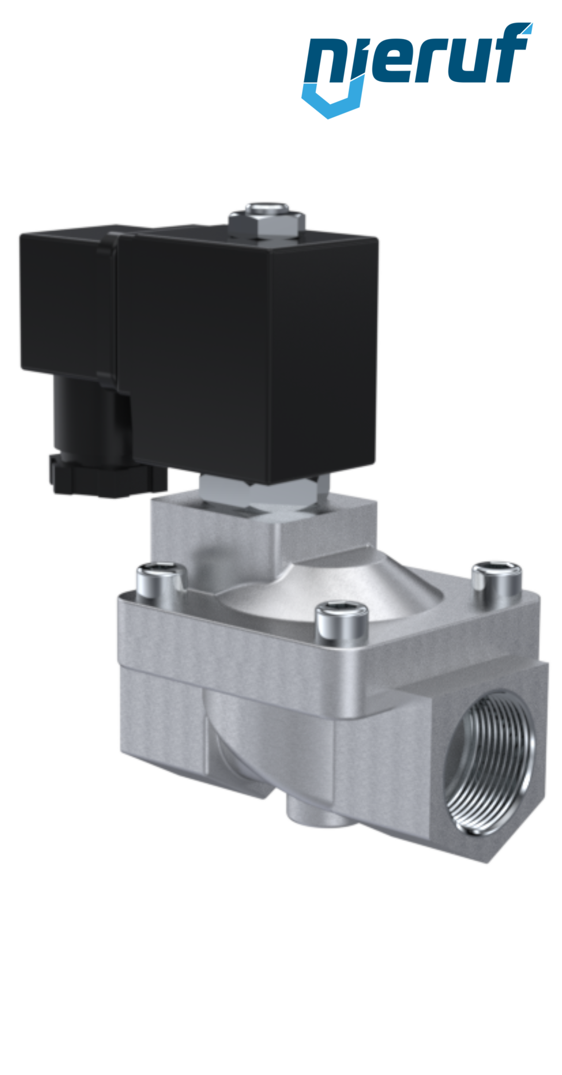 électrovanne G 3/4" pouce DN20 en acier inoxydable 1.4408, joint en EPDM, servo-commandée, tension nominale 24V DC, pression 0,5 - 16 bar