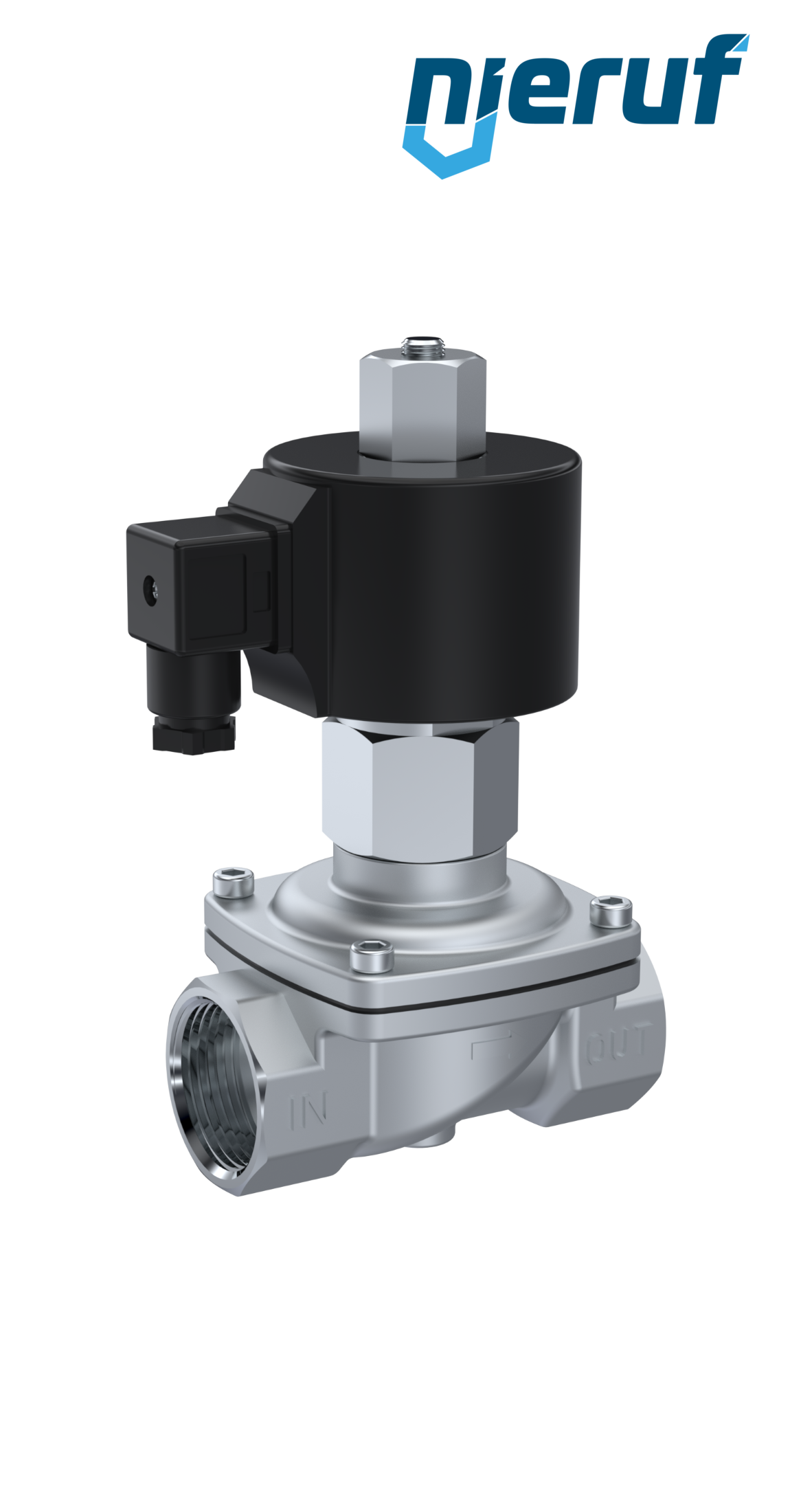 électrovanne DN16 G 1/2" pouce NO - normalement ouverte modèle EV06 commande forcée en acier inoxydable 1.4308 FKM 230V 50Hz pour fluides liquides et gazeux