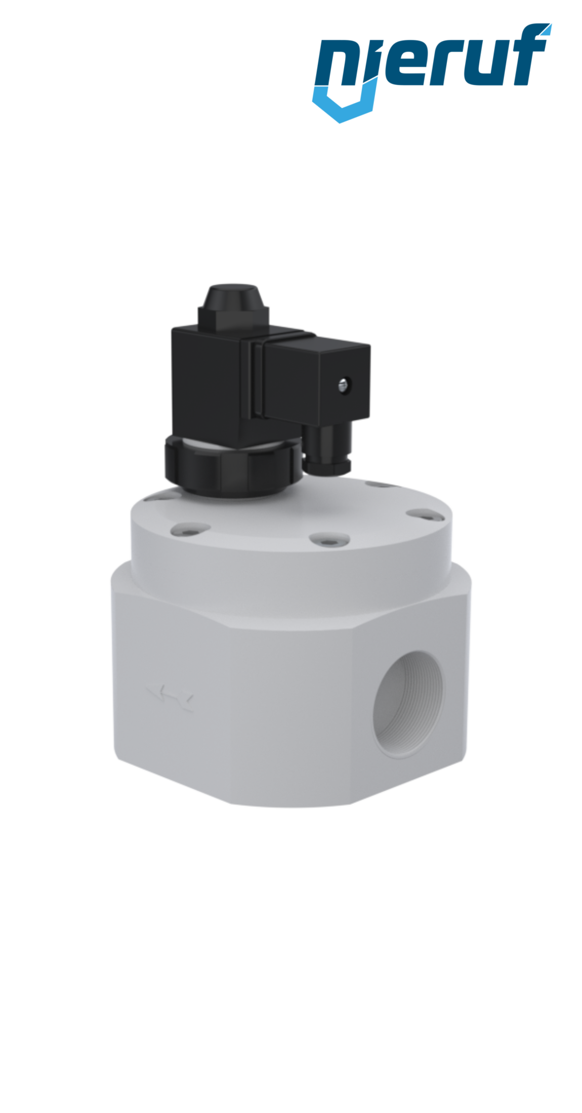électrovanne 2/2 voies G 1/2" pouce DN15 en PTFE, joint en FKM, servo-commandée, tension nominale 230V 50Hz, pression 0,3 - 6 bar